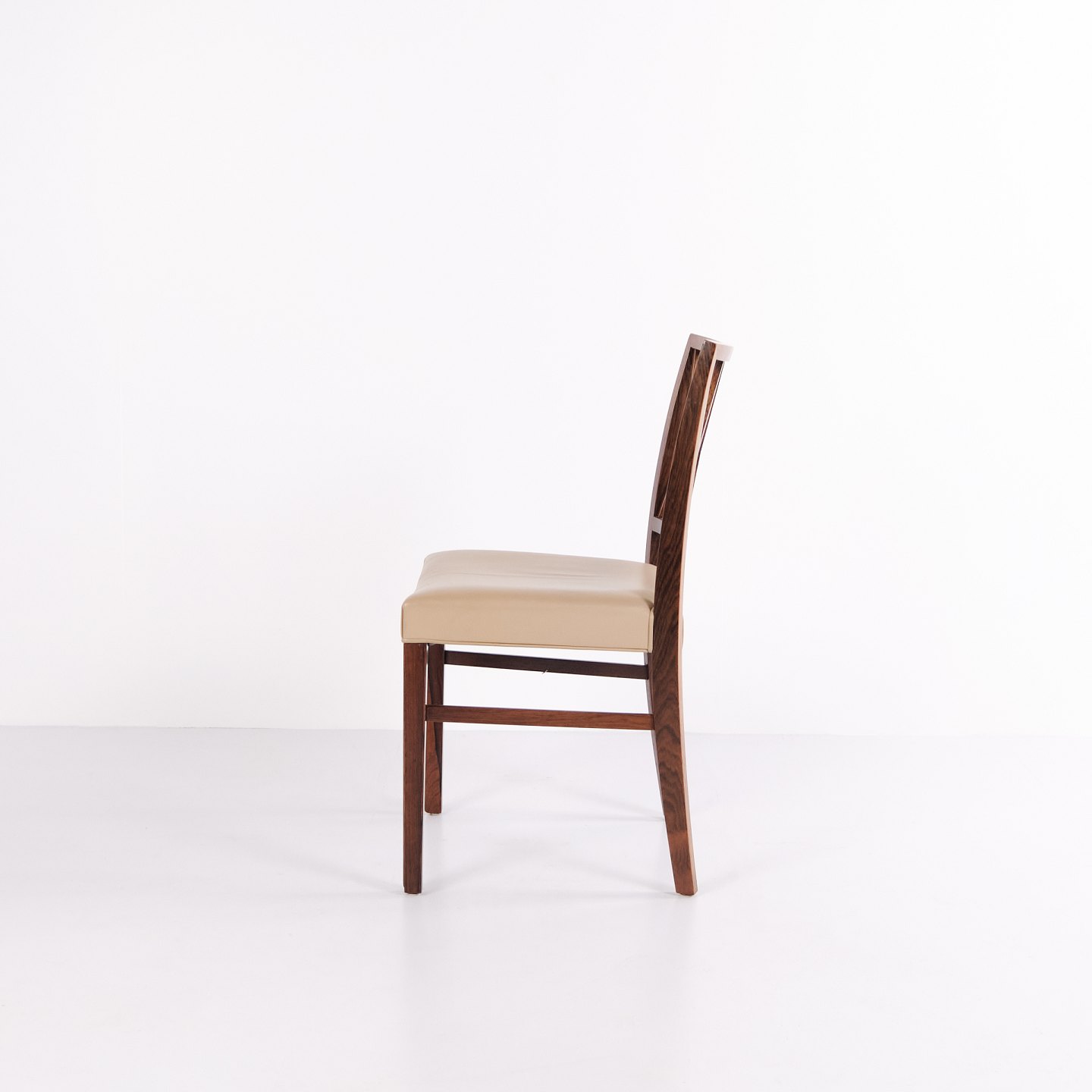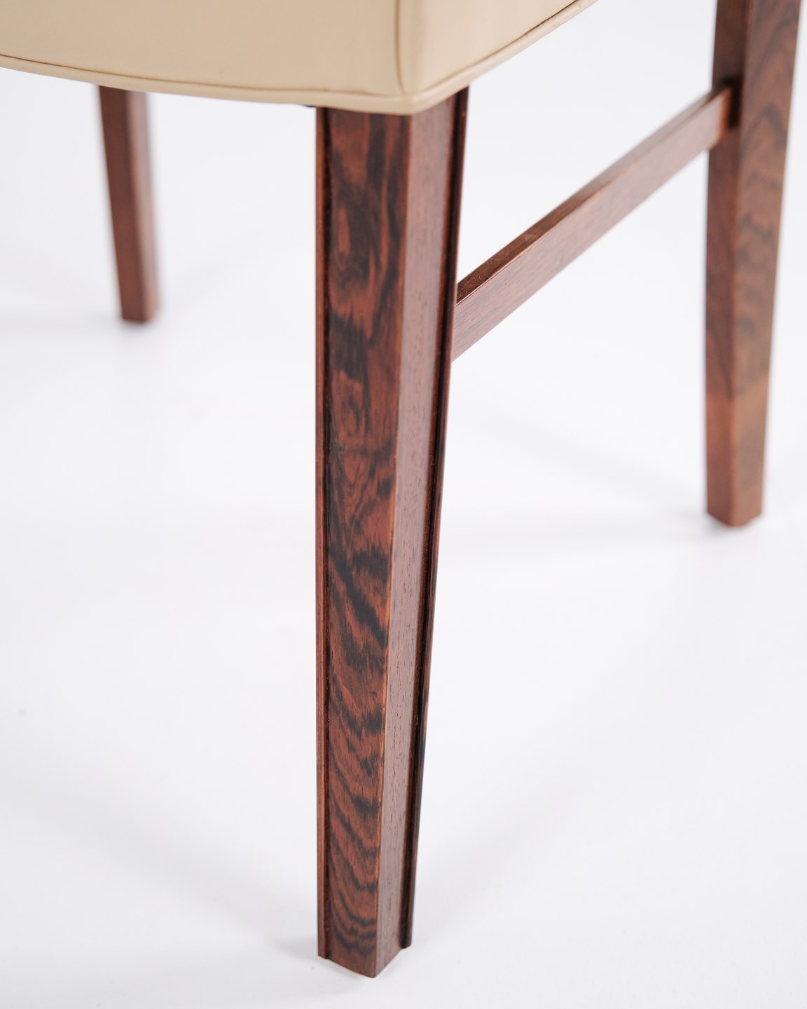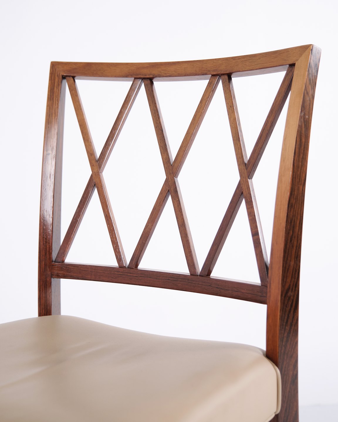 Satz von vier Esszimmerstühlen von Ole Wanscher für A.J. Iversen. Palisander und cremefarbenes Leder. Dänisches Design aus den 1960er-Jahren.— Designer: Ole Wanscher