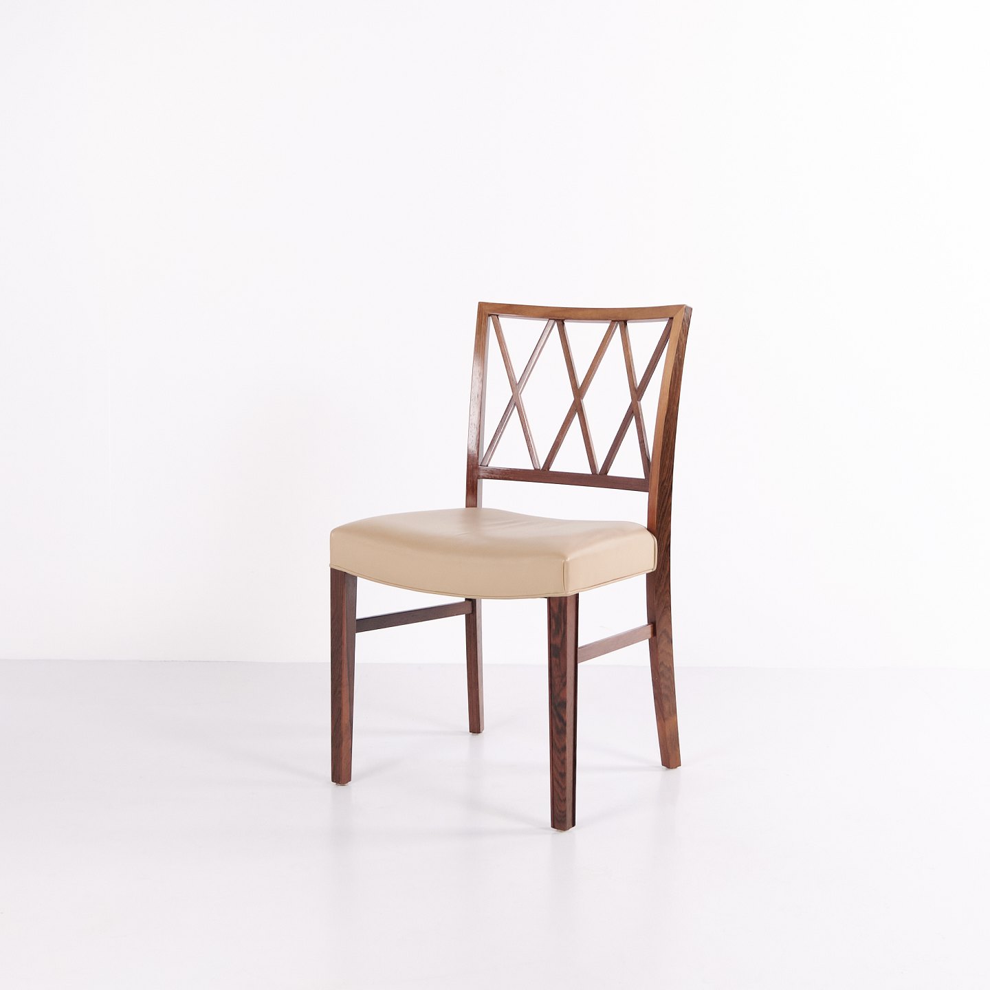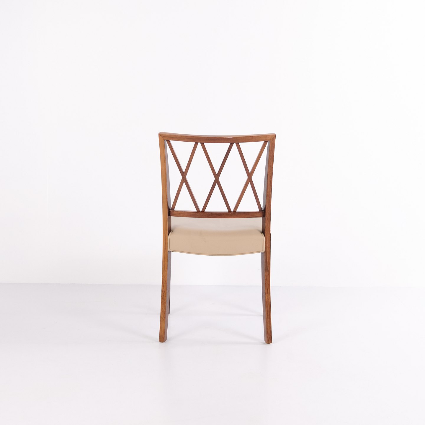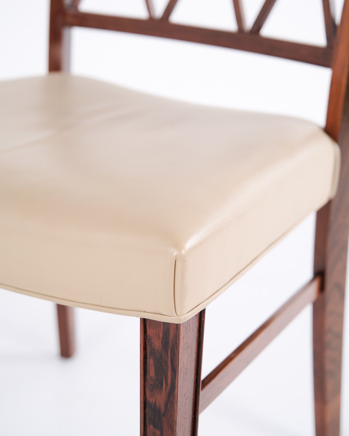 Satz von vier Esszimmerstühlen von Ole Wanscher für A.J. Iversen. Palisander und cremefarbenes Leder. Dänisches Design aus den 1960er-Jahren.— Designer: Ole Wanscher