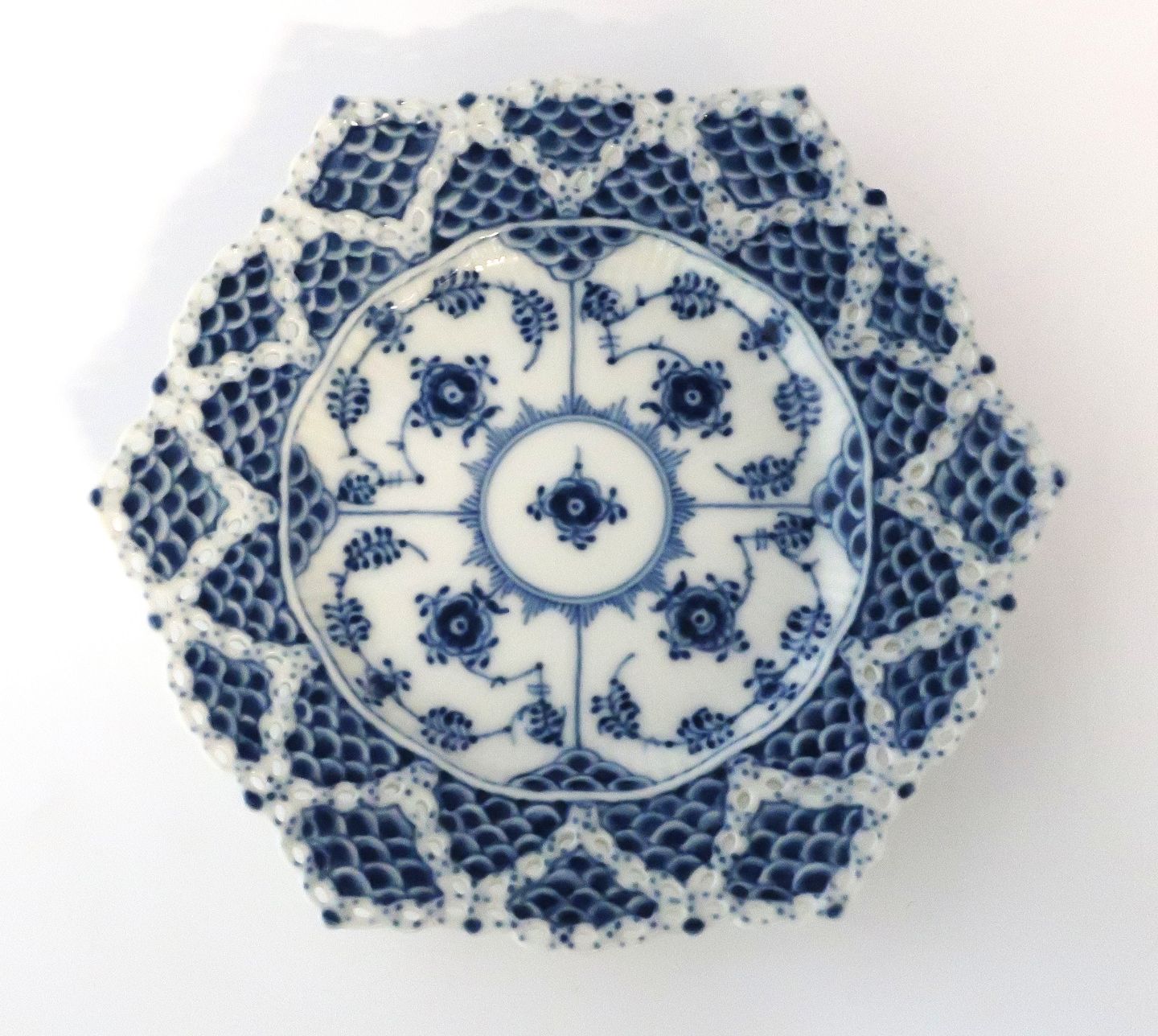 Royal Copenhagen. Musselmalet, Vollspitze. Kuchenplatte mit durchbrochenem Kante. Modell 1144. Durchmesser 17,5 cm. (1 Wahl) Händler