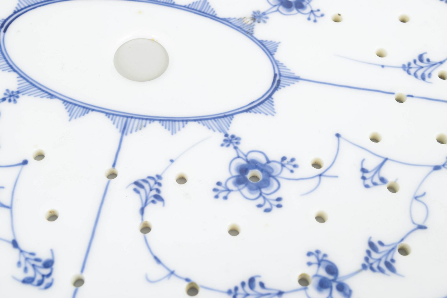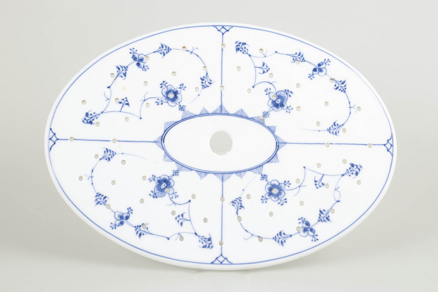 Introduced in 1775, Blue Fluted Plain is Royal Copenhagen’s oldest and most celebrated pattern. Inspired by Chinese blue-and-white porcelain, it is distinguished by its disciplined composition and finely hand-painted decoration. Fish strainers were traditionally used for serving boiled or poached fish and are today highly sought-after collector’s pieces, particularly early examples from the late 19th century in first quality.