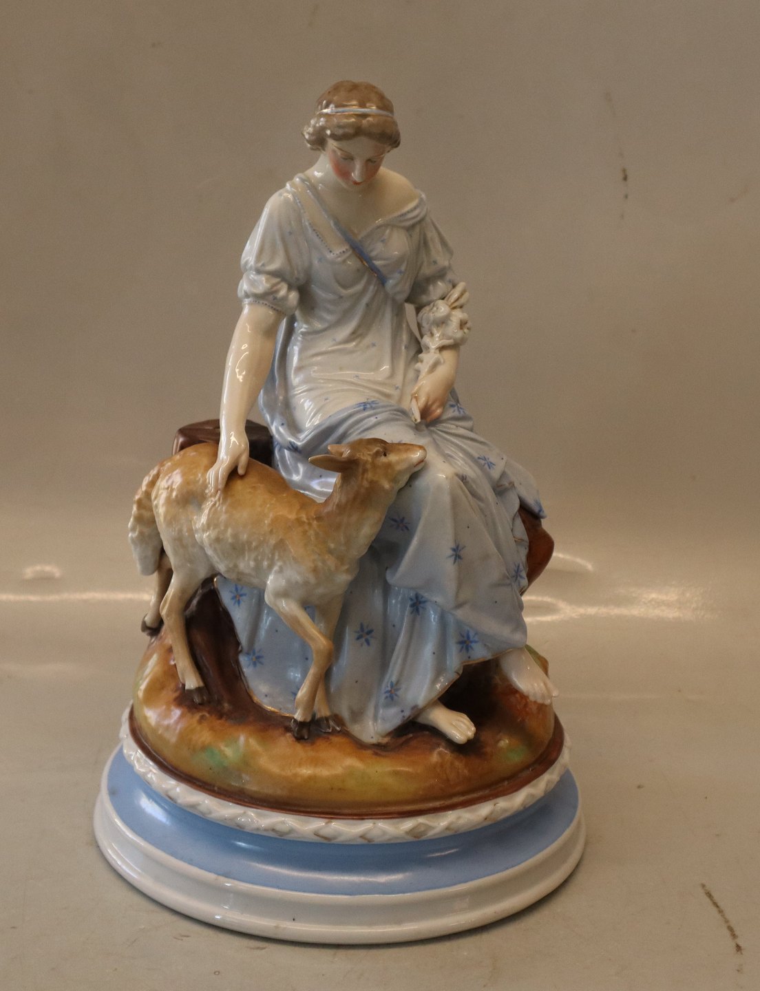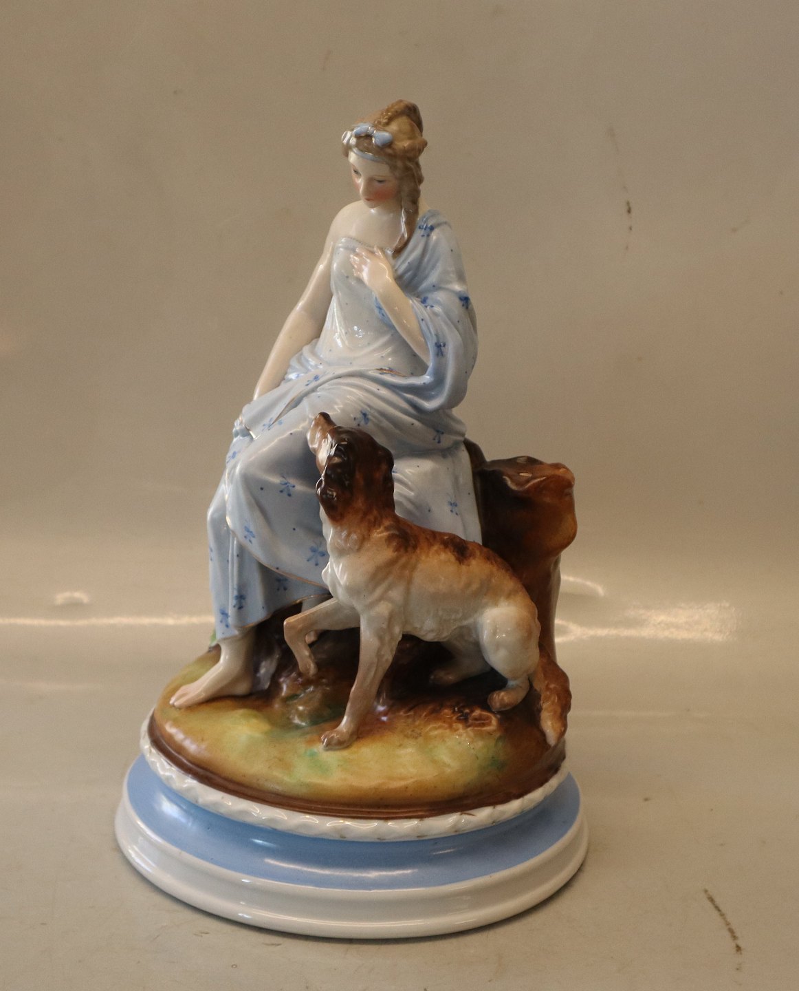 2 Antikke Europæiske figurer 29 x 18.5 cm Kvinde med hund og Kvinde med gedekid