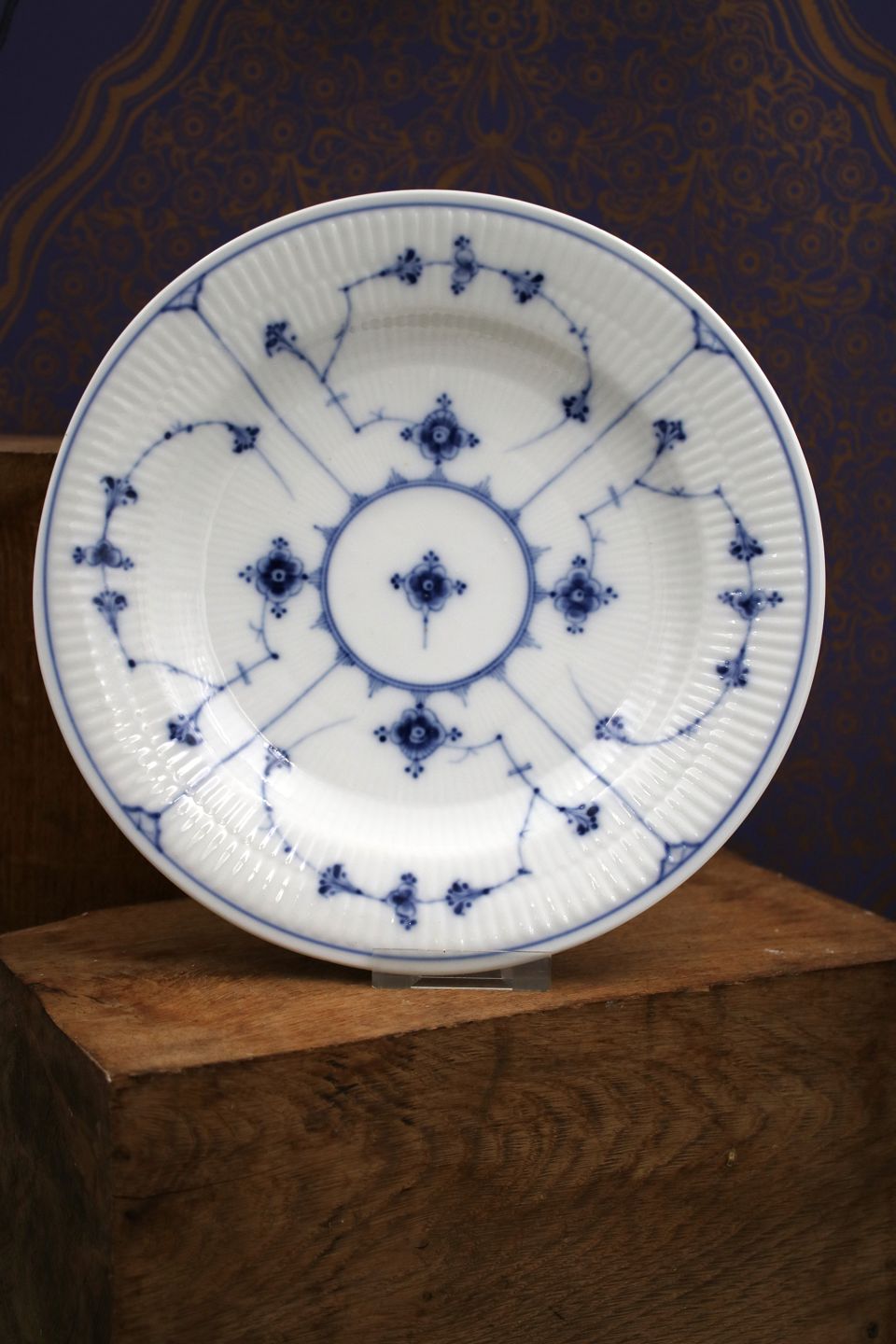 Antik Musselmalet Riflet middags tallerken fra Royal Copenhagen.1893-1900.