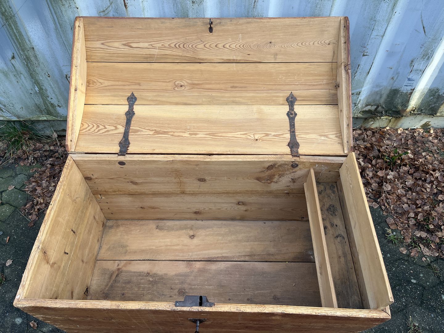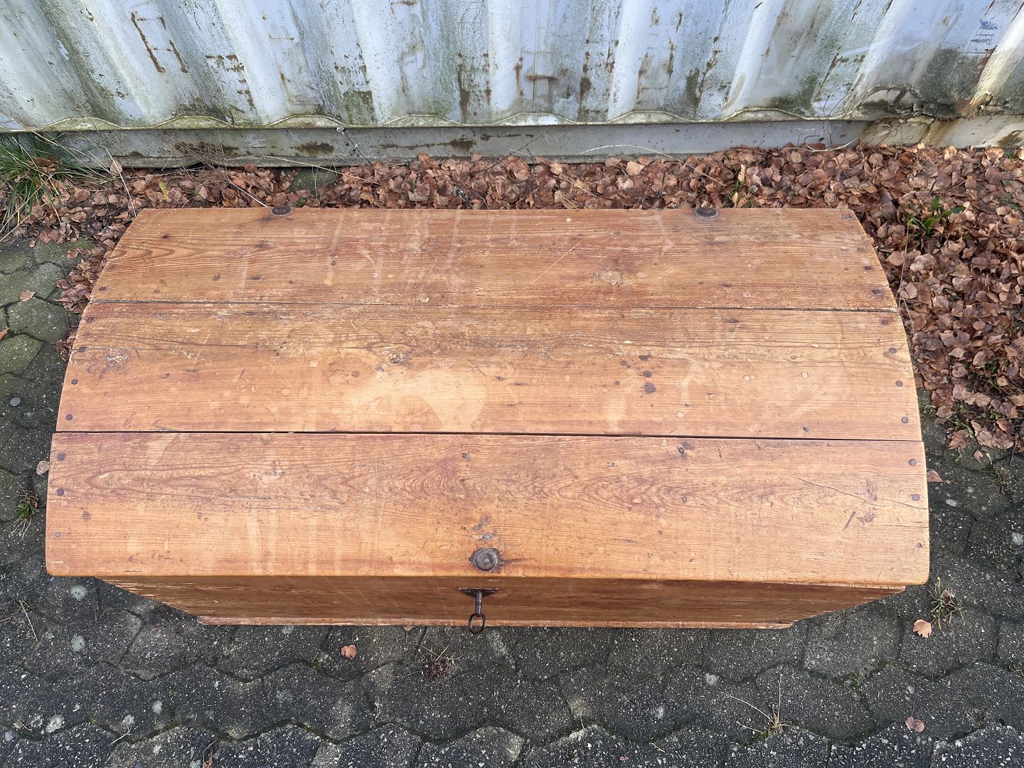Kiste i massivt fyrretræ, fra 1900erne.Den har brugsspor.