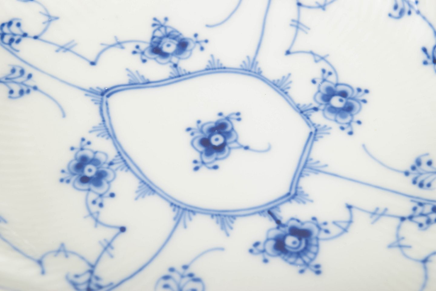Royal Copenhagen Musselmalet Riflet fad med hank, 1966.Beschreibung: