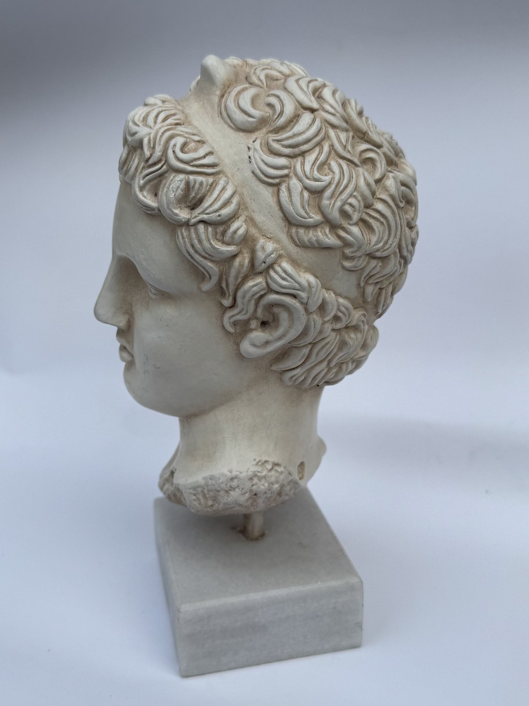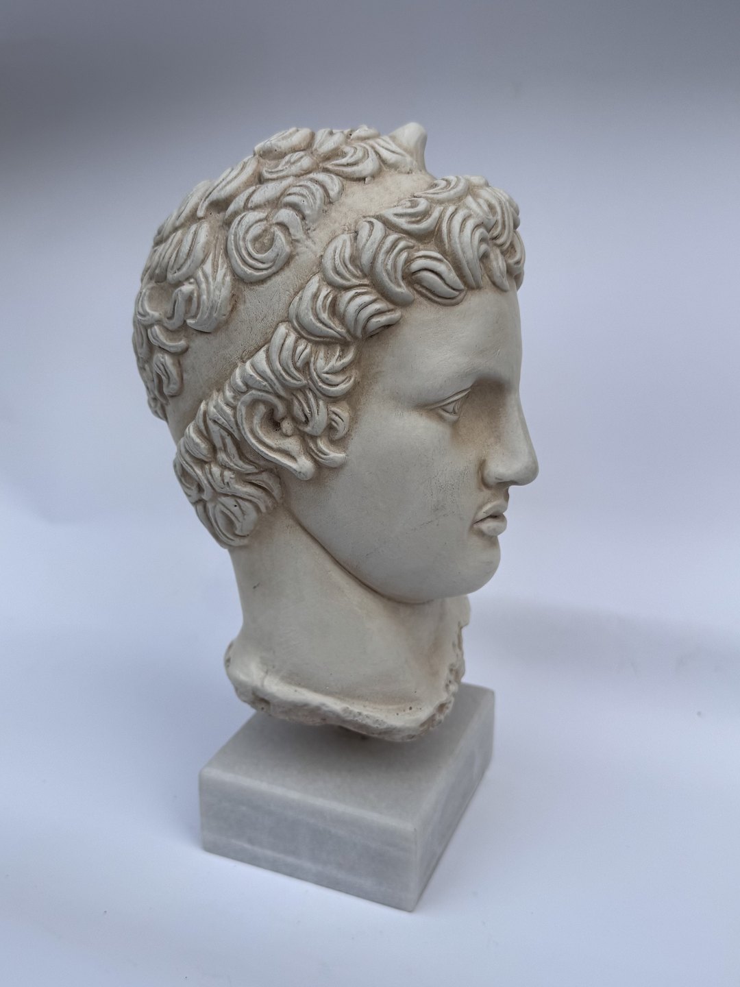 Buste, hoved skulptur, i gips af Efivos Marathon Boy. Stående på hvid base af stenart. Fremstår i god stand. H. 21,5 cm