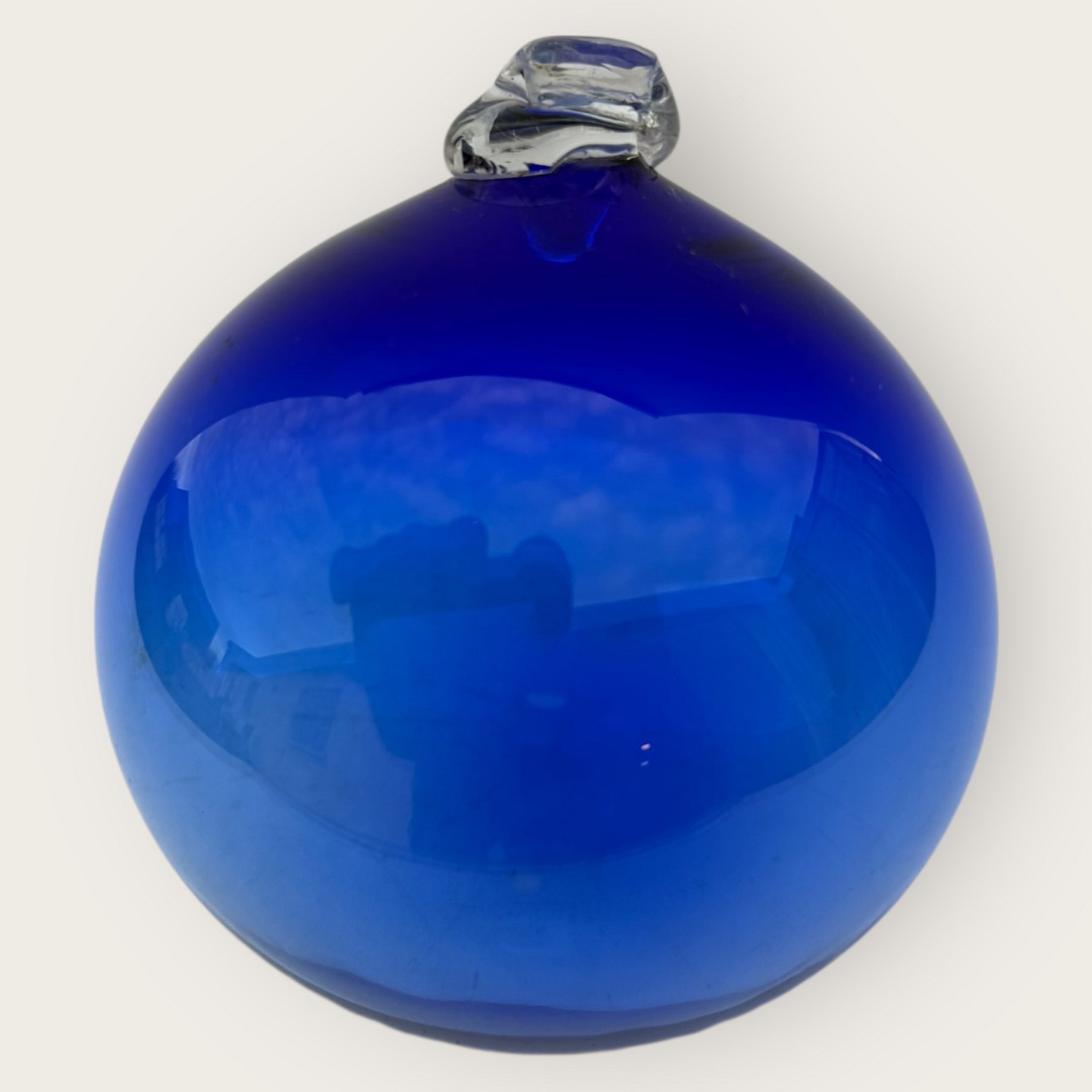 Blaue Glaskugel zum Aufhängen oder zur Verwendung mit Carnaby-/Otto-Bauer-Vasen, möglicherweise in Holmegaard hergestellt, ca. 11 cm Durchmesser. *Guter gebrauchter Zustand*Lager: 1
