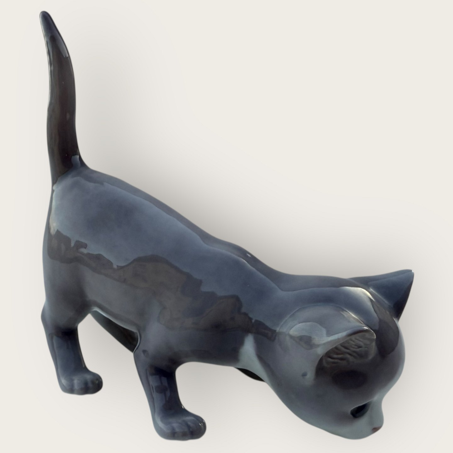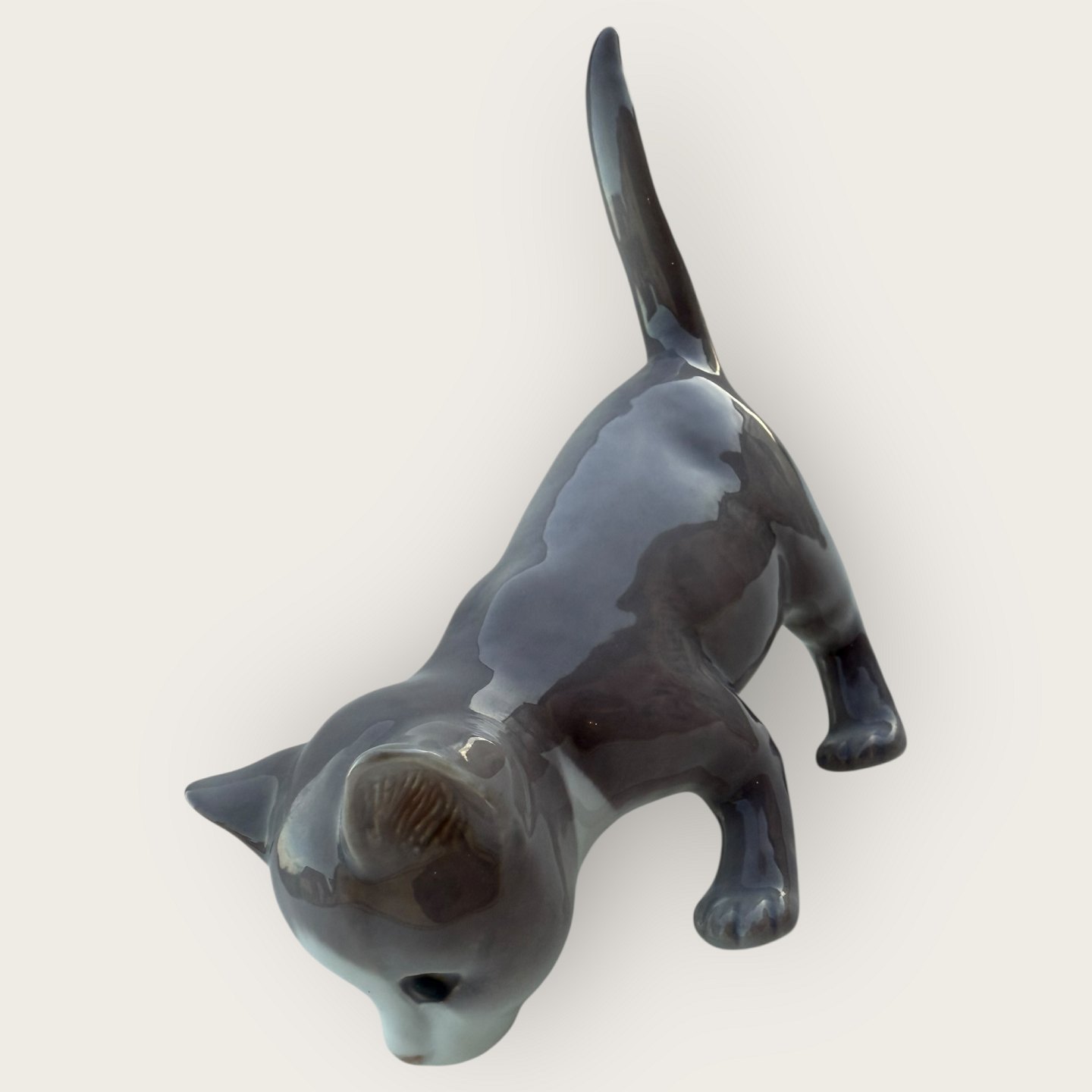 Bing & Grondahl, Graue Katze mit erhobenem Schwanz, Nr. 2517, 1. Wahl, Maße ca. 12 x 13 x 6 cm *Guter Zustand*Lager: 1