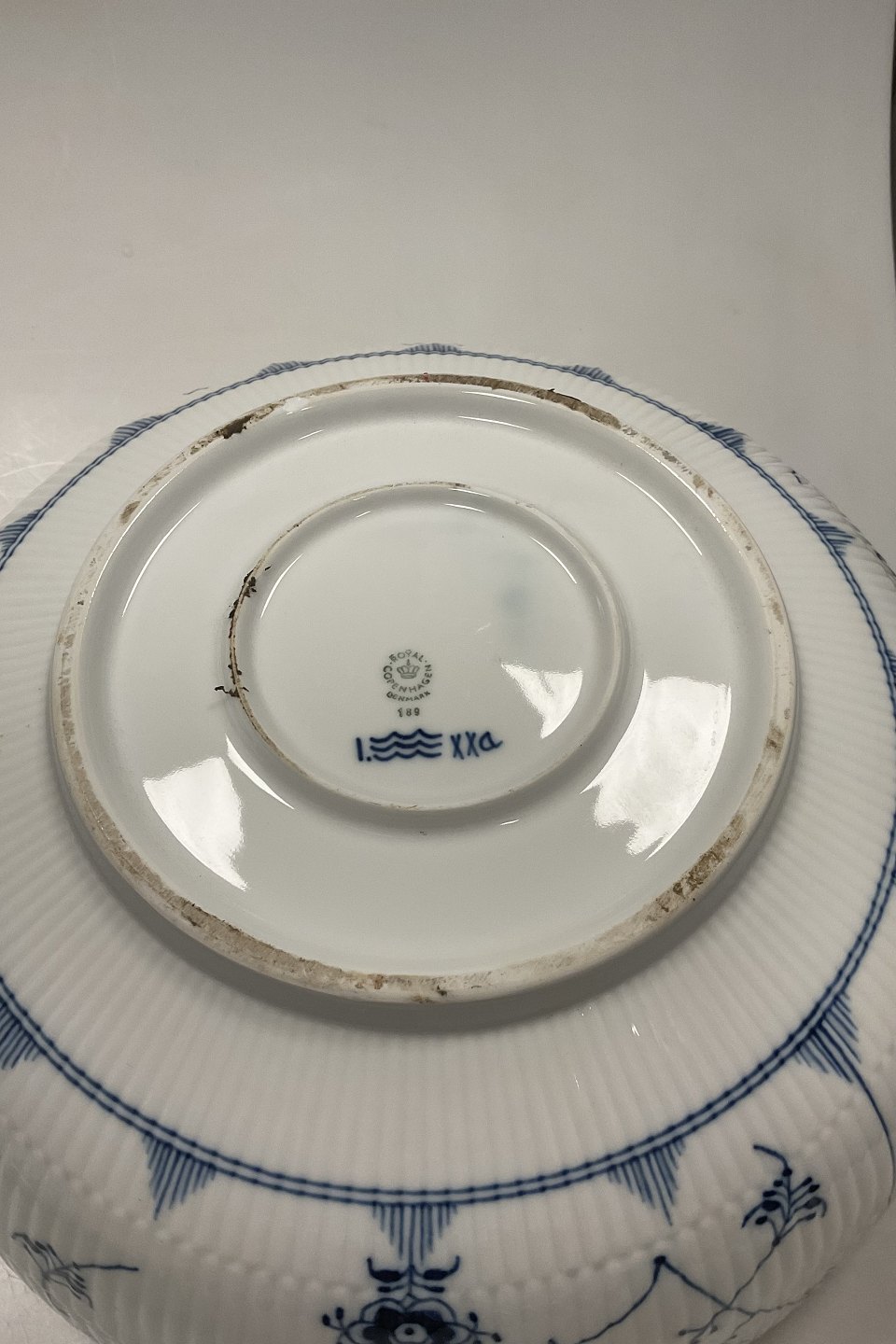 Royal Copenhagen Musselmalet Riflet Stor Jubilæums Punch Bowle No 189. 35 cm dia ((13 25/32") .Perfekt stand