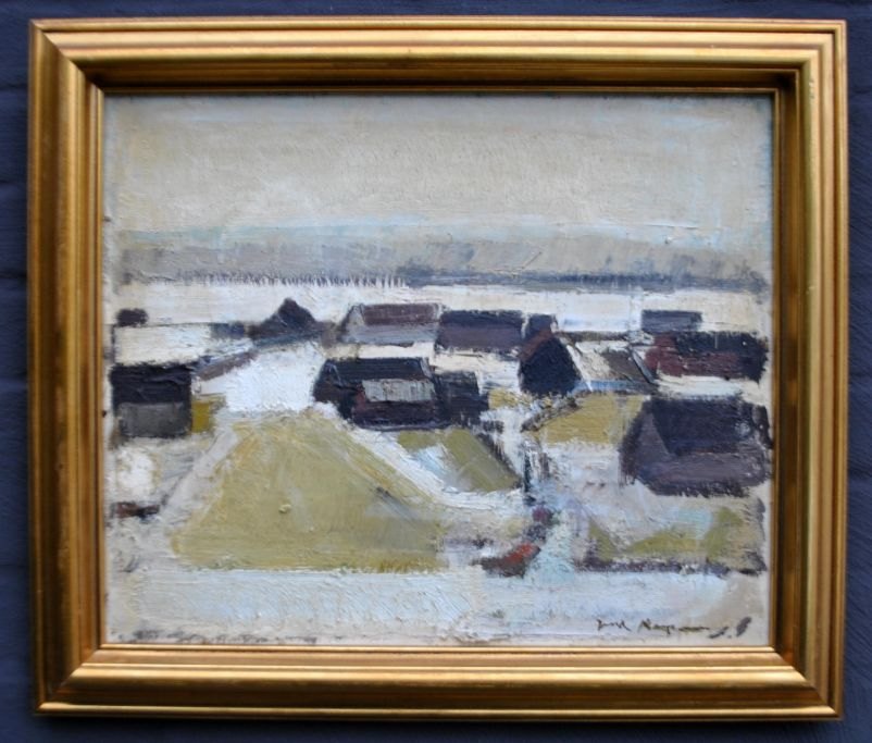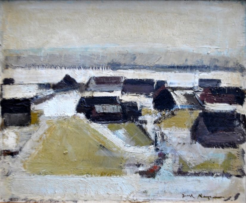 Kampmann, Jack (1914–1989) Dänemark: Schneelandschaft, Färöer-Inseln. Öl auf Leinwand. Signiert. 38 x 48 cm.Gerahmt: 48 x 57 cm.