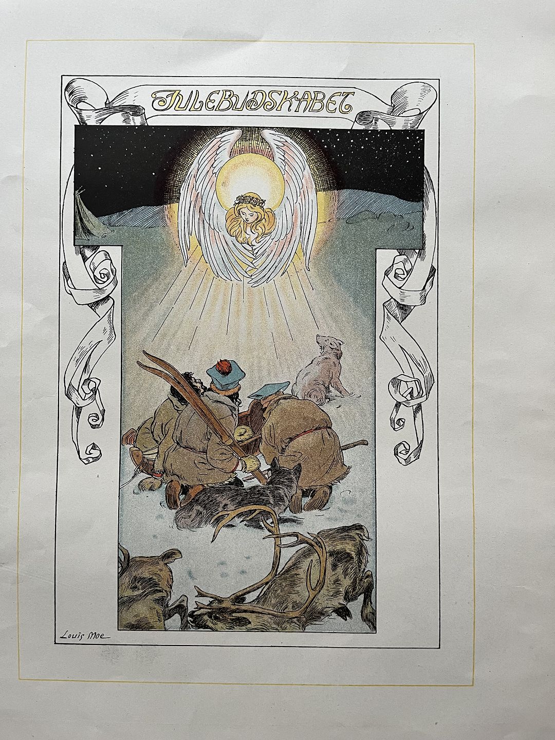 Litografisk tryk af Louis Moe - Julebudskabet.