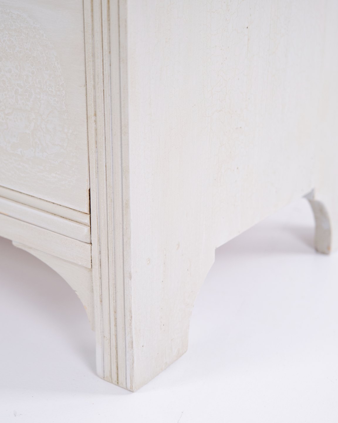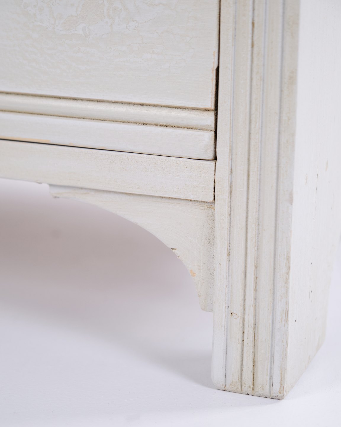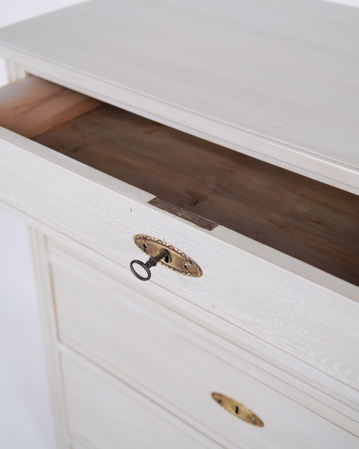 Antike Kommode aus den 1890er-Jahren mit vier Schubladen. Grau gestrichenes Holz und klassisches Formensprach mit schöner Patina.— Zeitraum: 1890er-Jahre