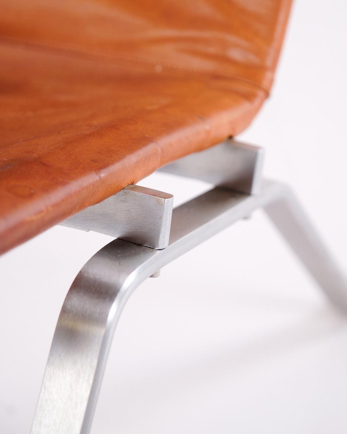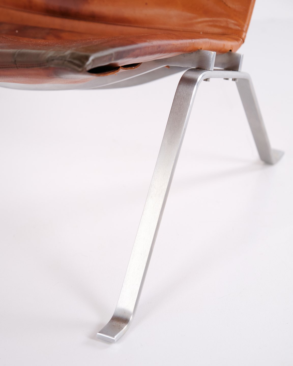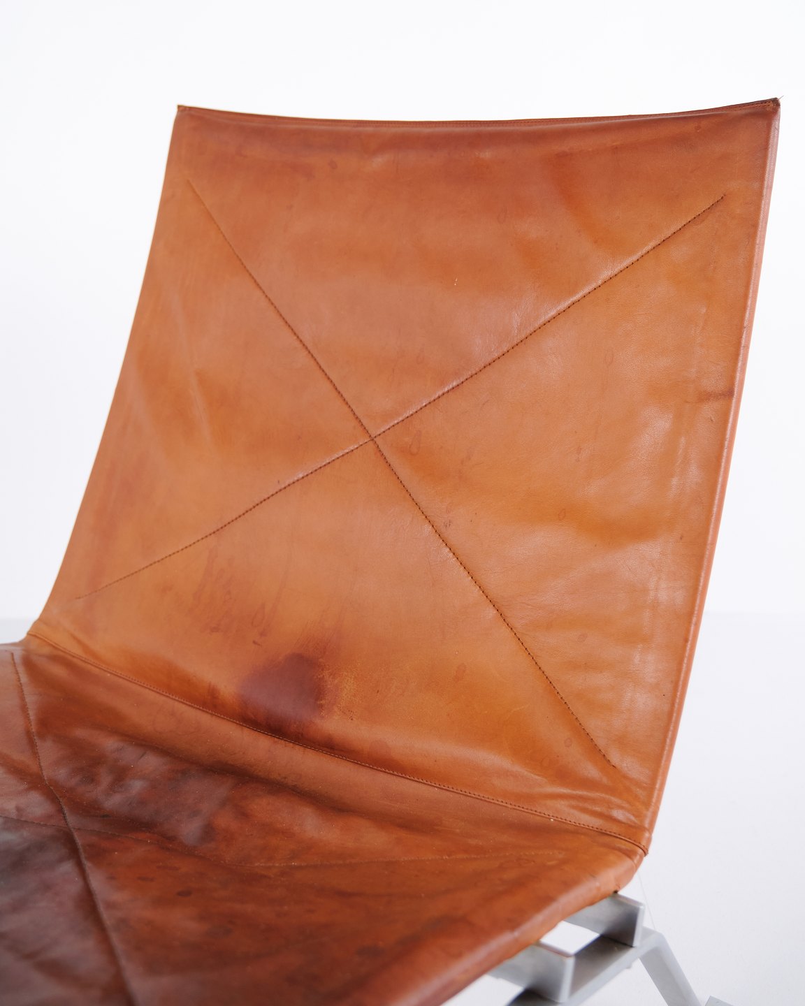 PK22 Sessel von Poul Kjærholm für E. Kold Christensen. Originalpolsterung aus patiniertem Cognac-Leder. Dänische Designikone der 1950er-Jahre.— Designer: Poul Kjærholm