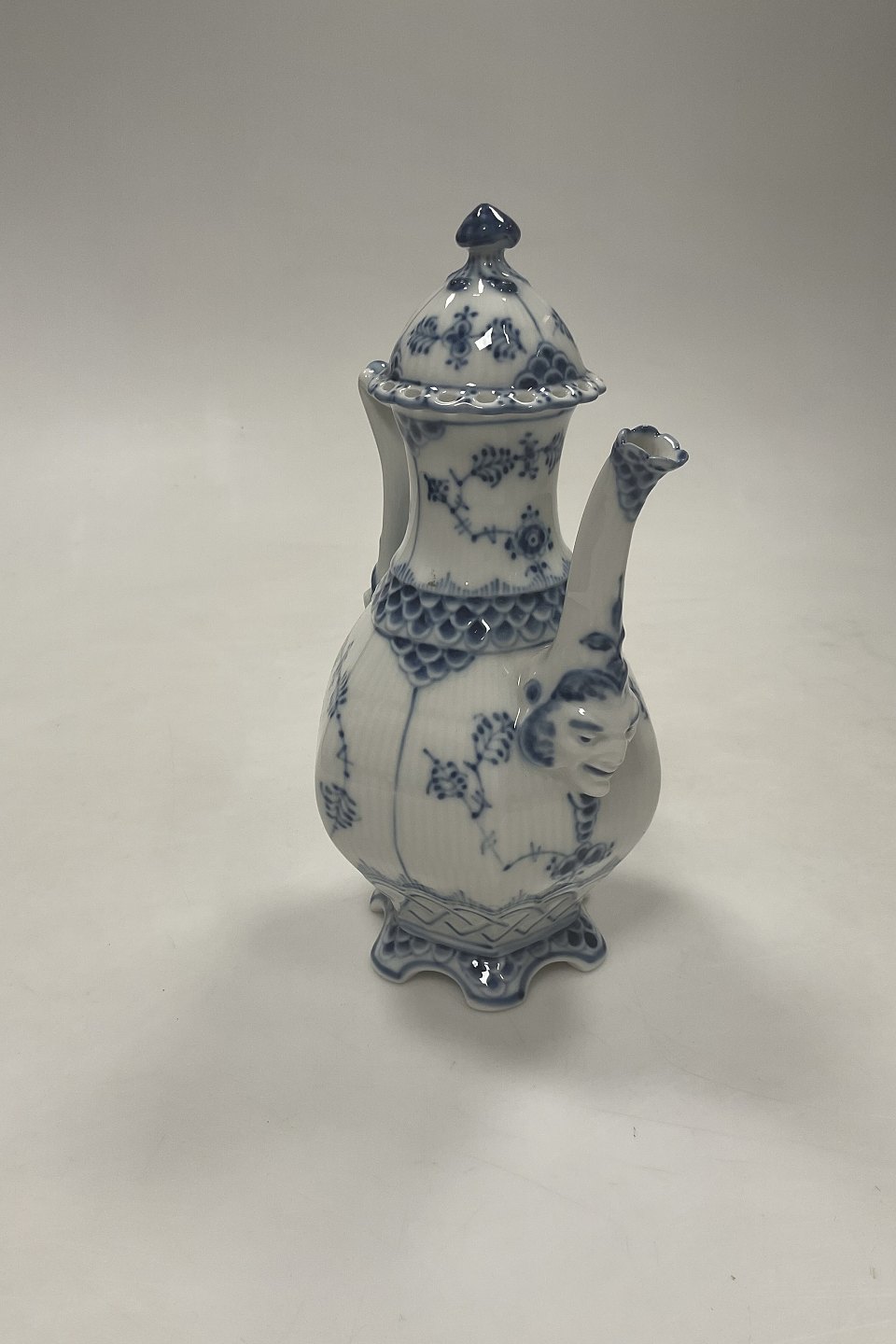 Royal Copenhagen Musselmalet Helblonde Lille sekskantet kaffekande No. 1030. 1. sortering. Måler 21 cm (8 17/64 in.)Lager: 1