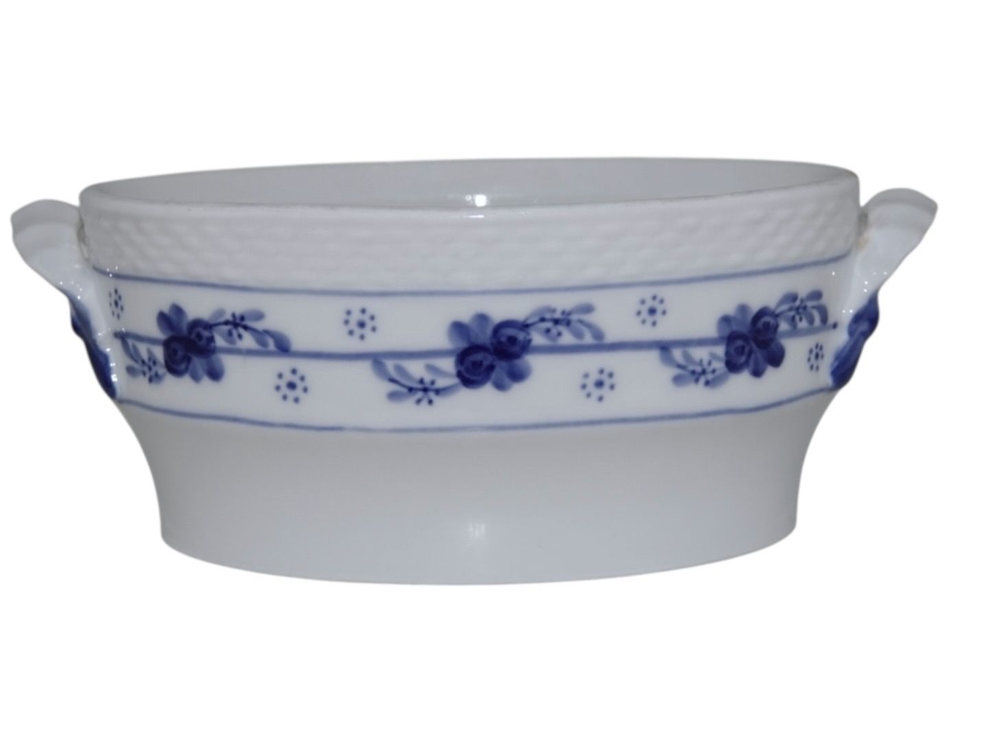 Royal Copenhagen Rosenknob / Blå Rose sjælden oval sukkerskål der mangler et låg.Af fabriksmærket kan det udledes at denne er fra mellem 1898 og 1923.