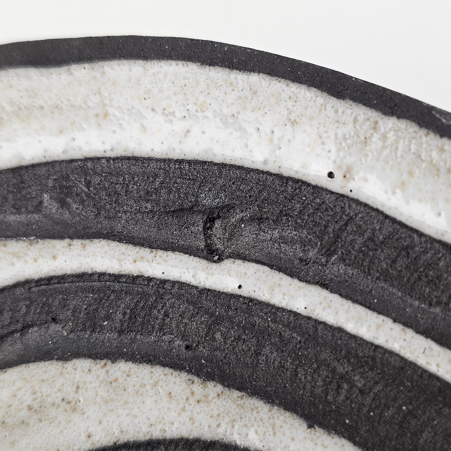 Fad i keramik fra Negro serien med abstrakt motiv på mørk baggrund. Nr. 5608-2Formgiver Marianne Starck