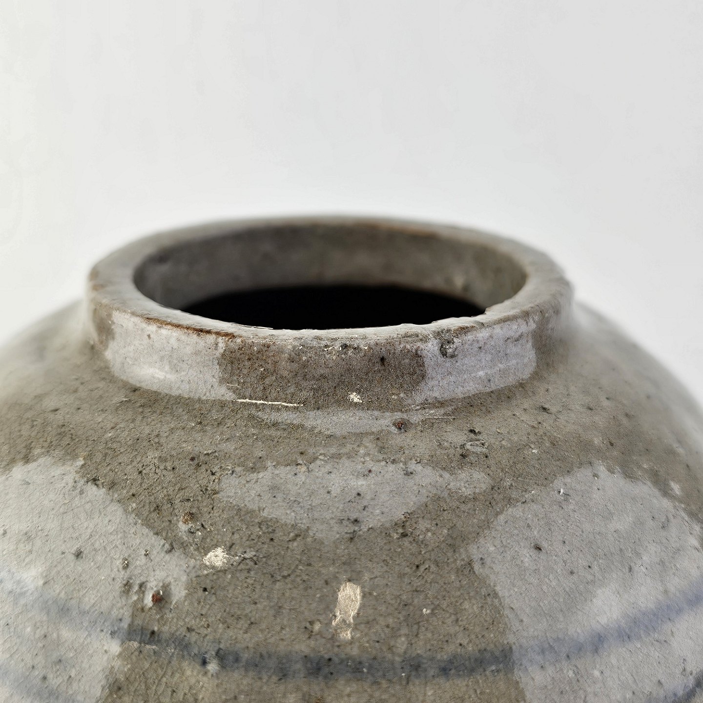 Vase i oval kugleform med grå glasurDesign ukendt af os