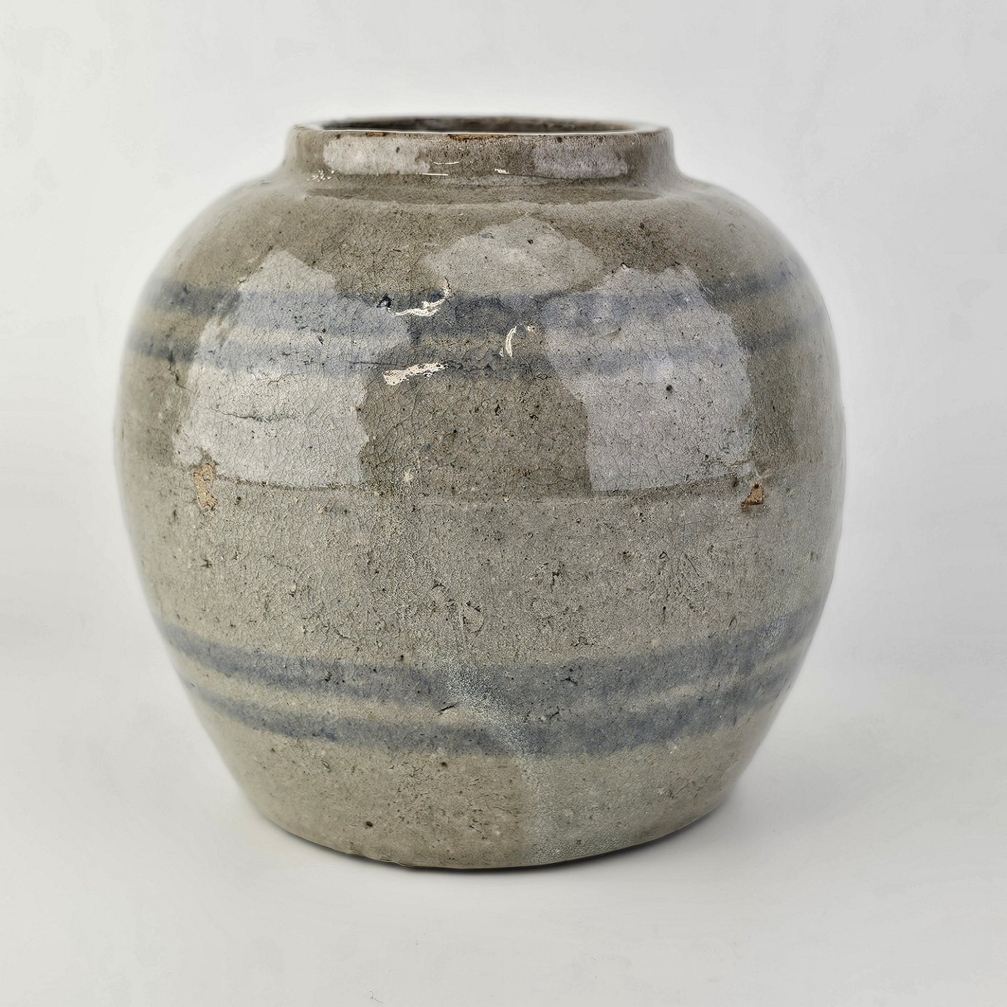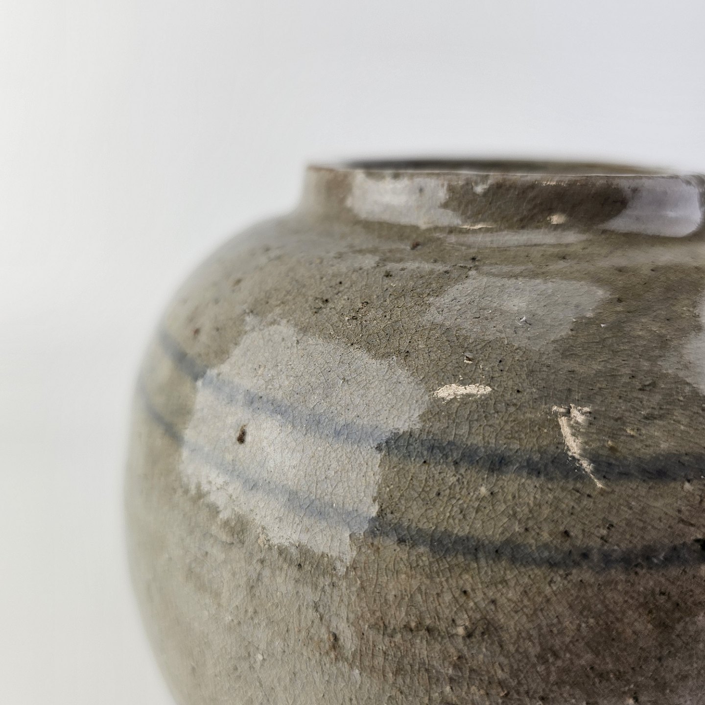 Vase med 2 blå striber i grå glasur