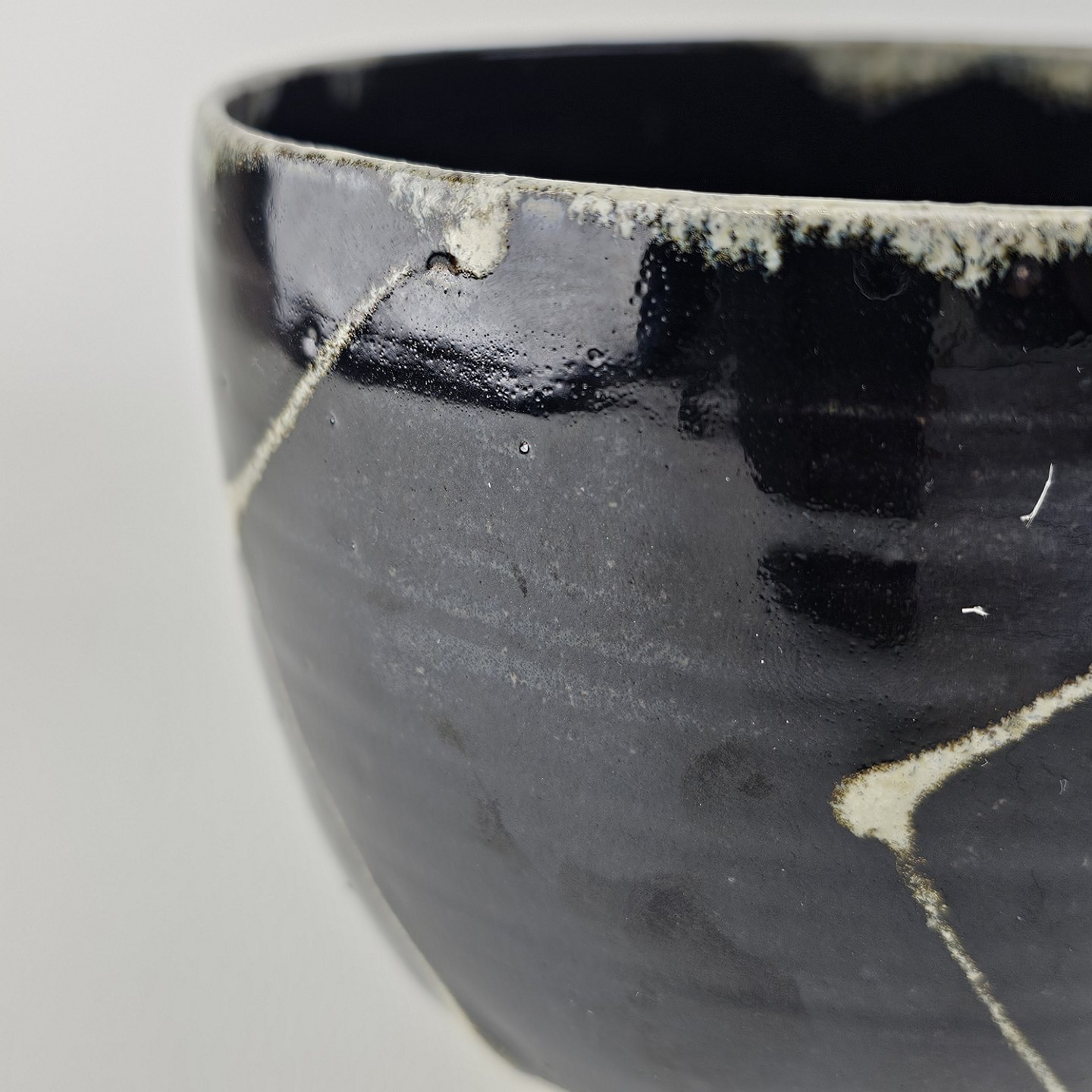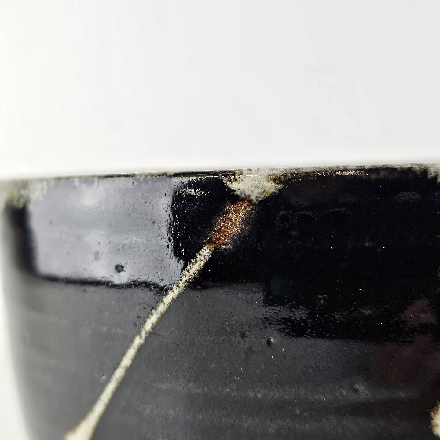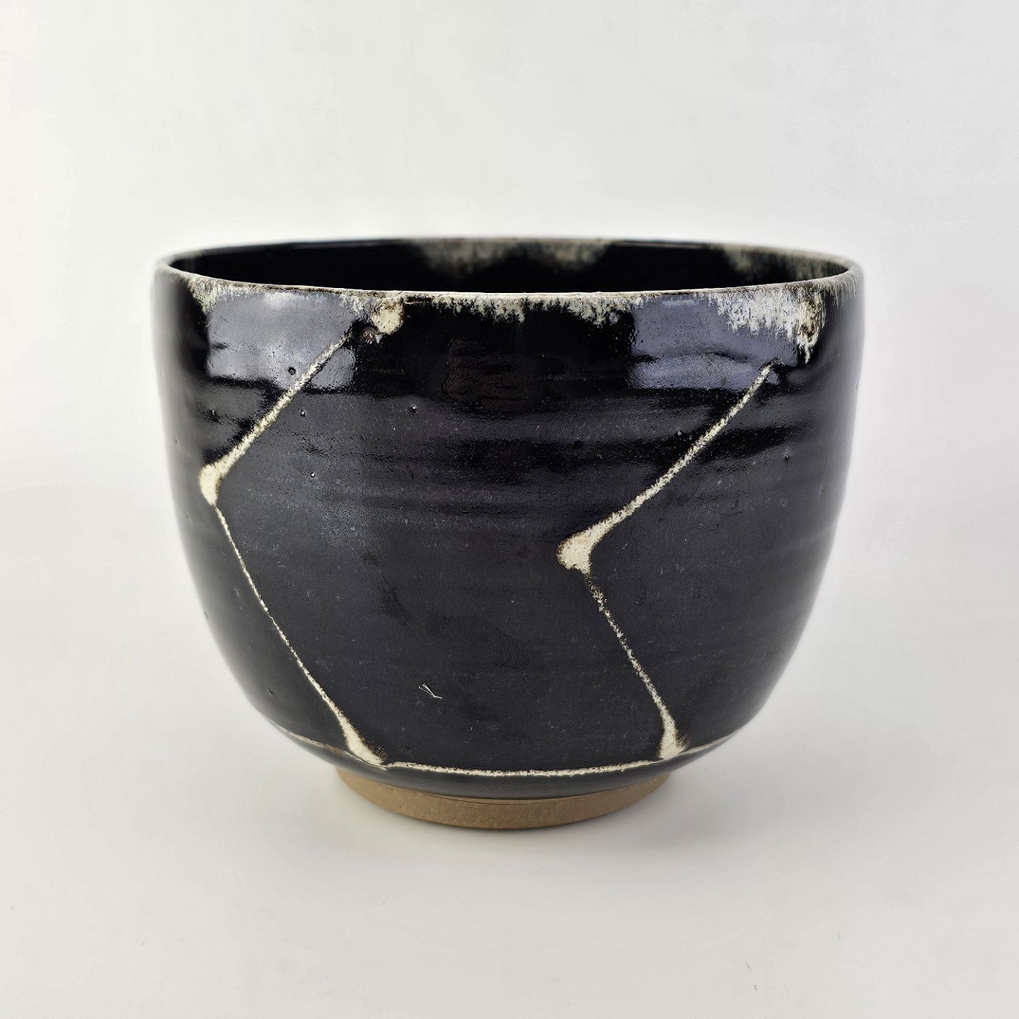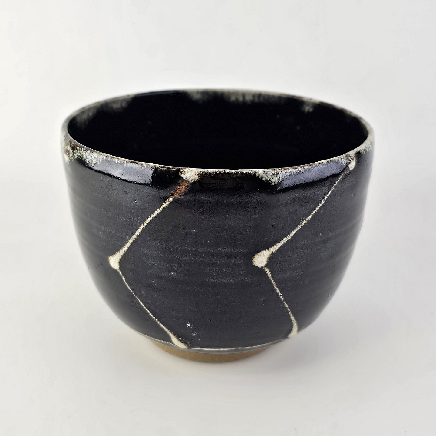 Urtepotte med japansk inspireret mønster i brunlig nuance med lyst stribet mønsterProducent ukendt