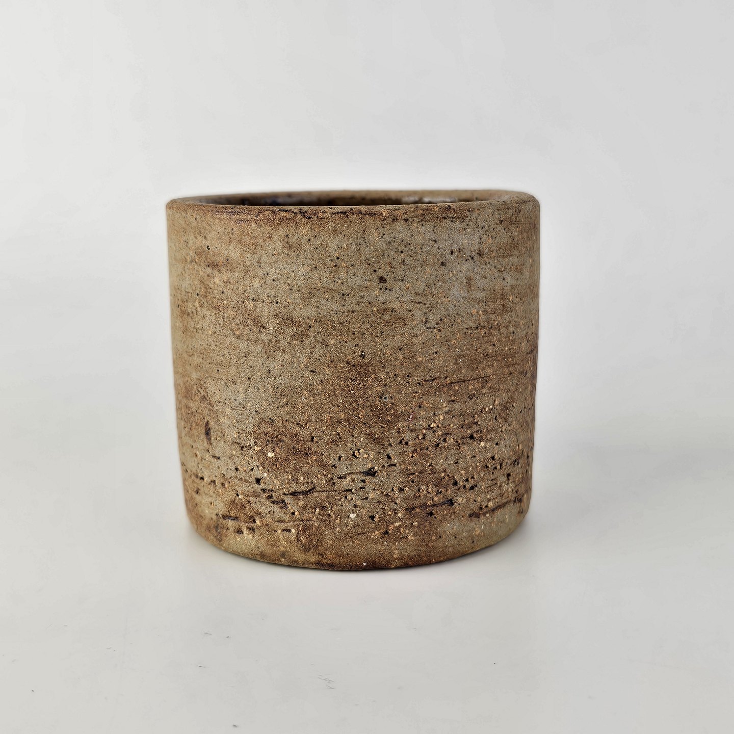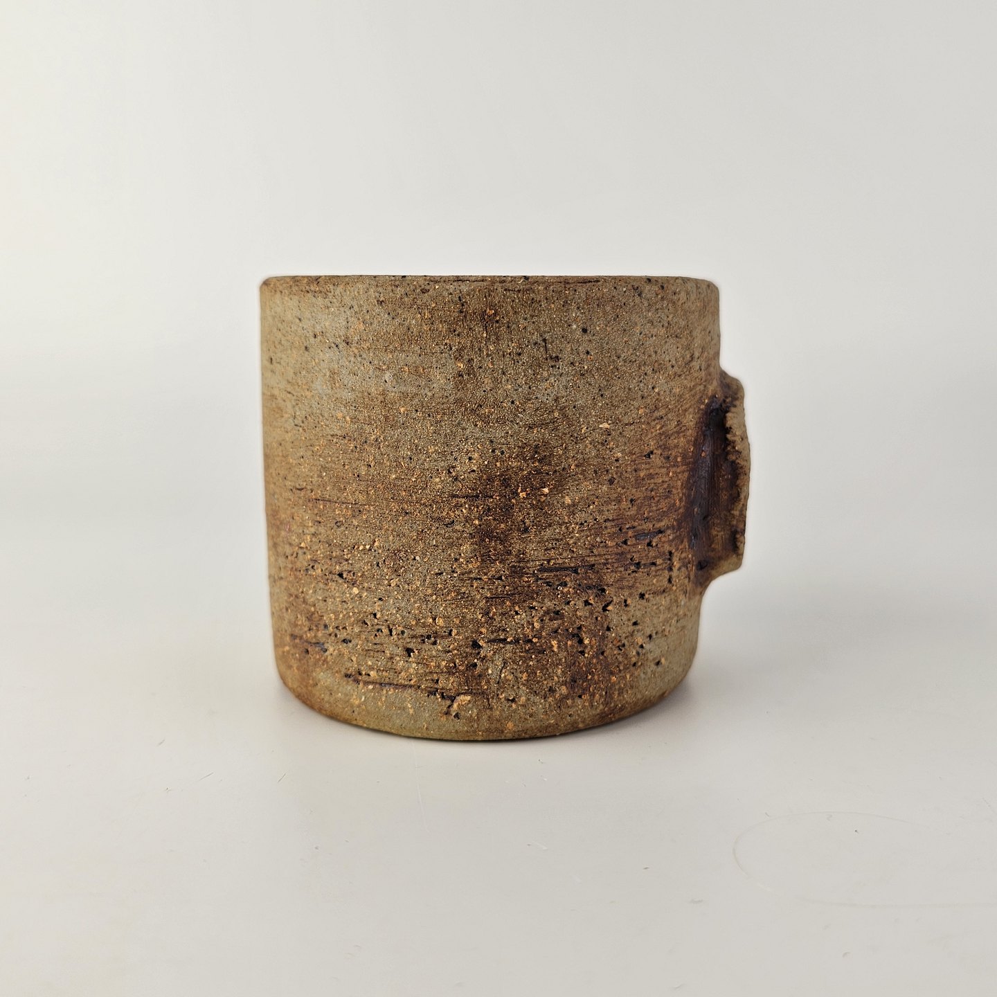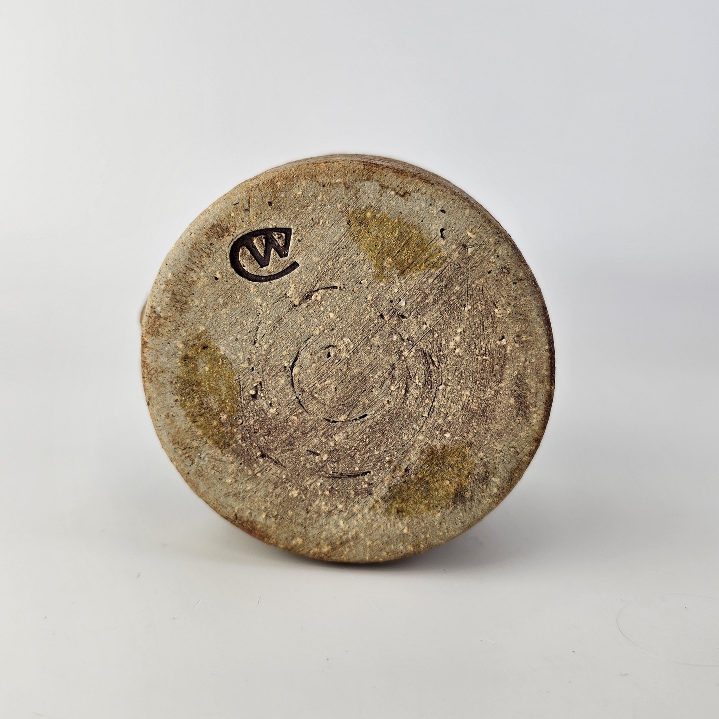 Brunlig krukke, krus, kop, vase med lille relief udvendigt. Den er uglasseret udvendigtSigneret CW