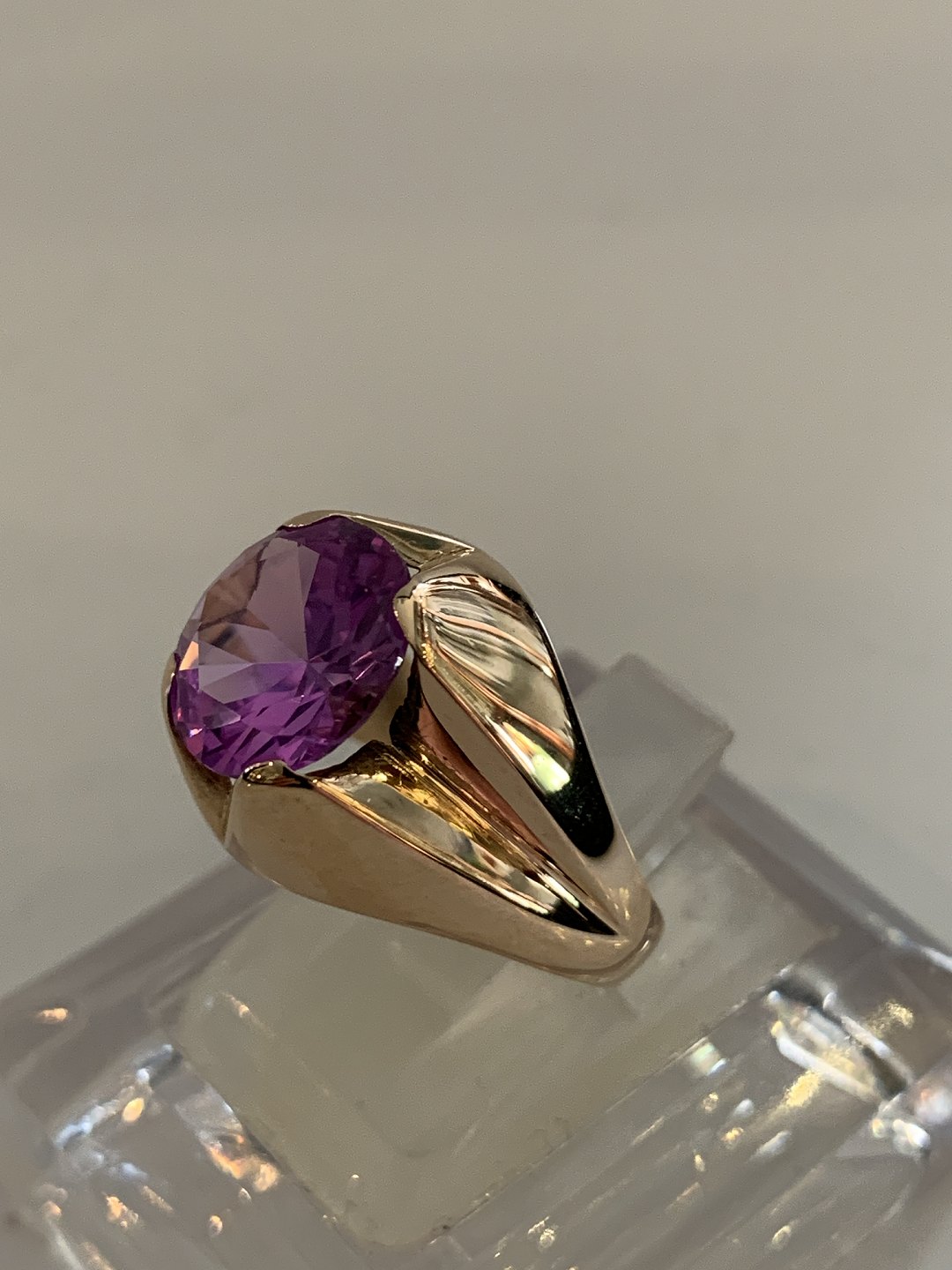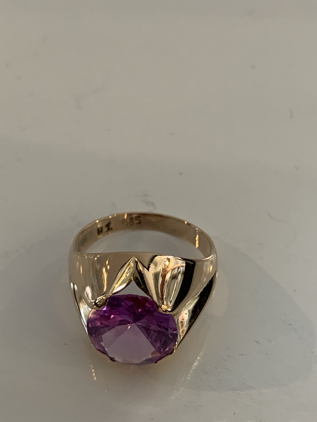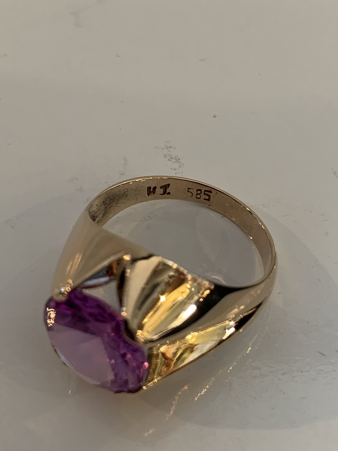 Vintage Damering med lilla sten 14 Karat GuldStemplet HJ. 585