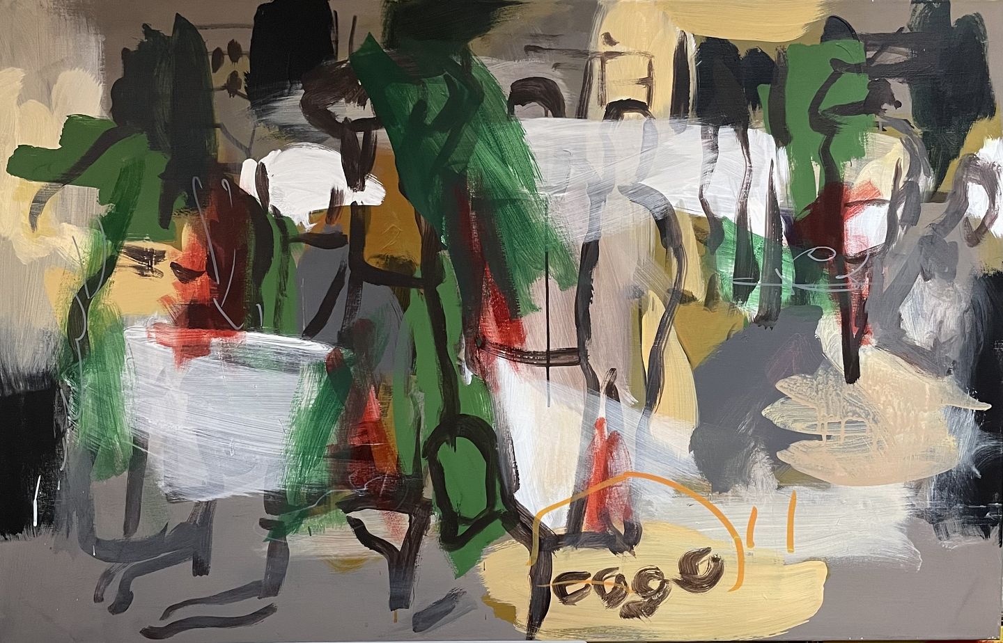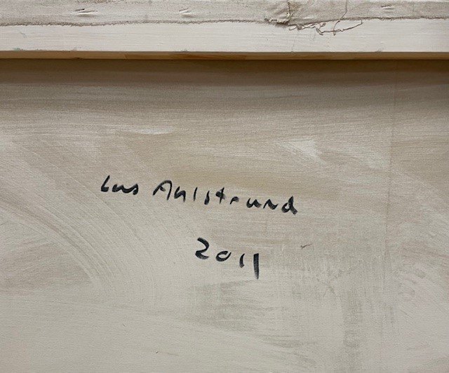 Oliemaleri på lærred, uden ramme, men i bred blændramme.