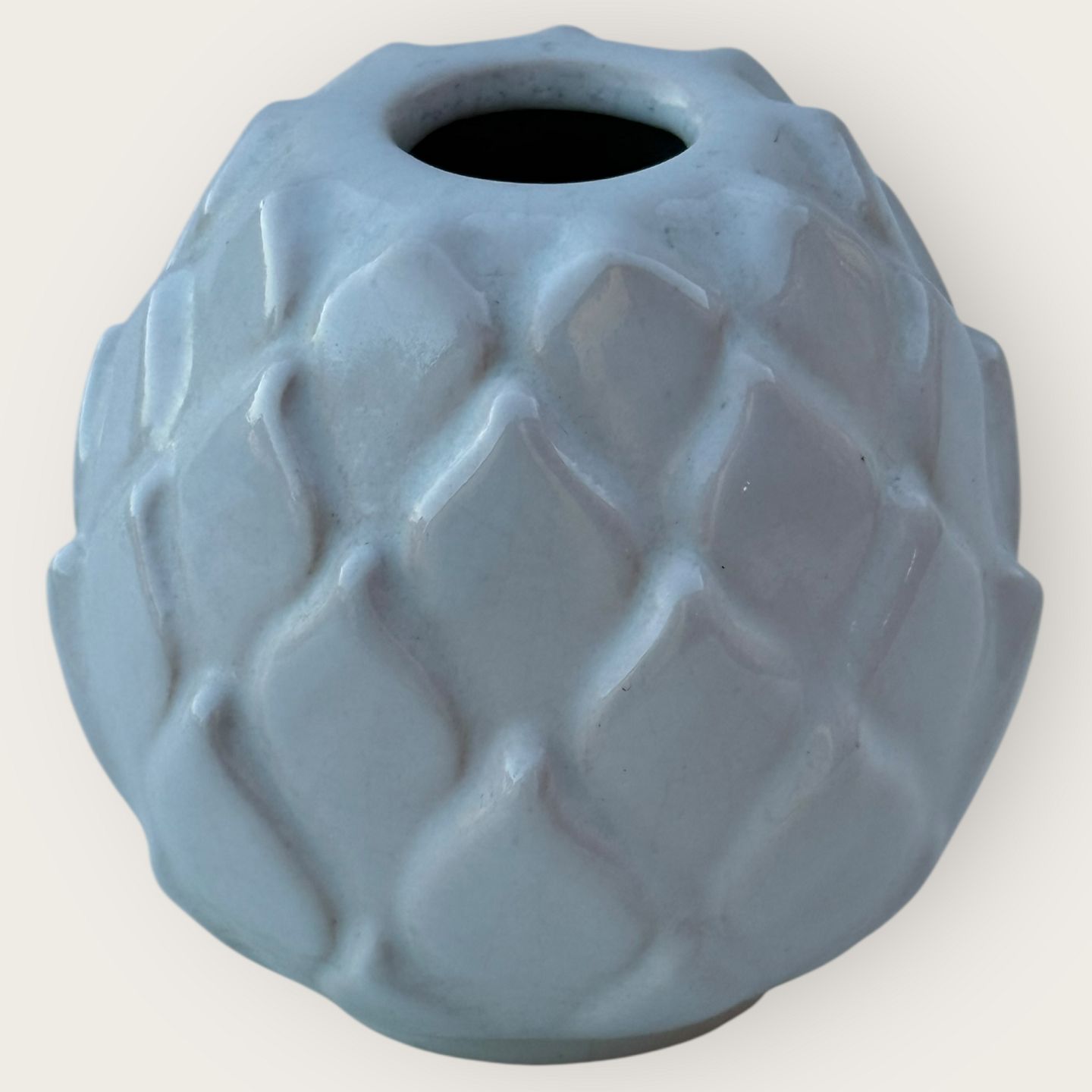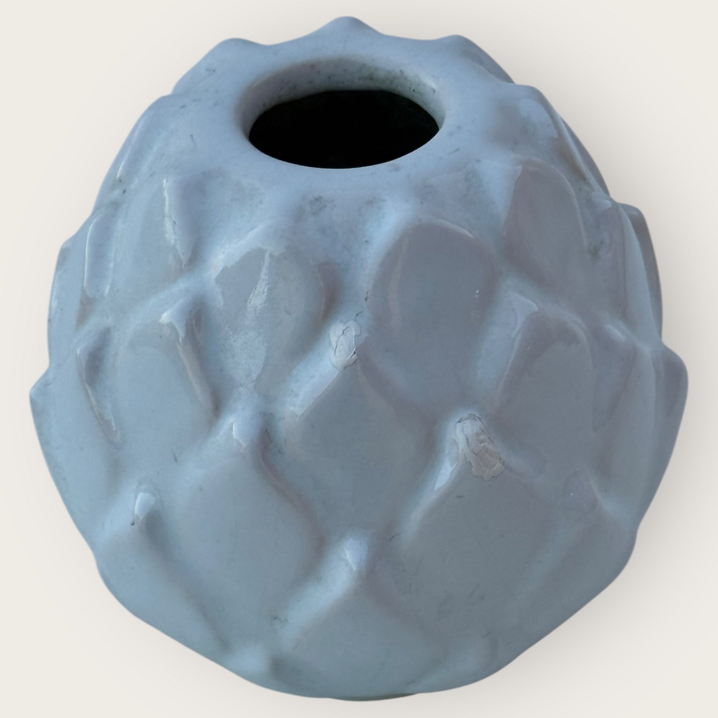Bornholmer Keramik, Michael Andersen, weiße Keramikvase, Nr. 5103, ca. 8,5 cm hoch*Hat 2 kleine Absplitterungen/Reparaturen (siehe die letzten 2 Fotos)*Lager: 1