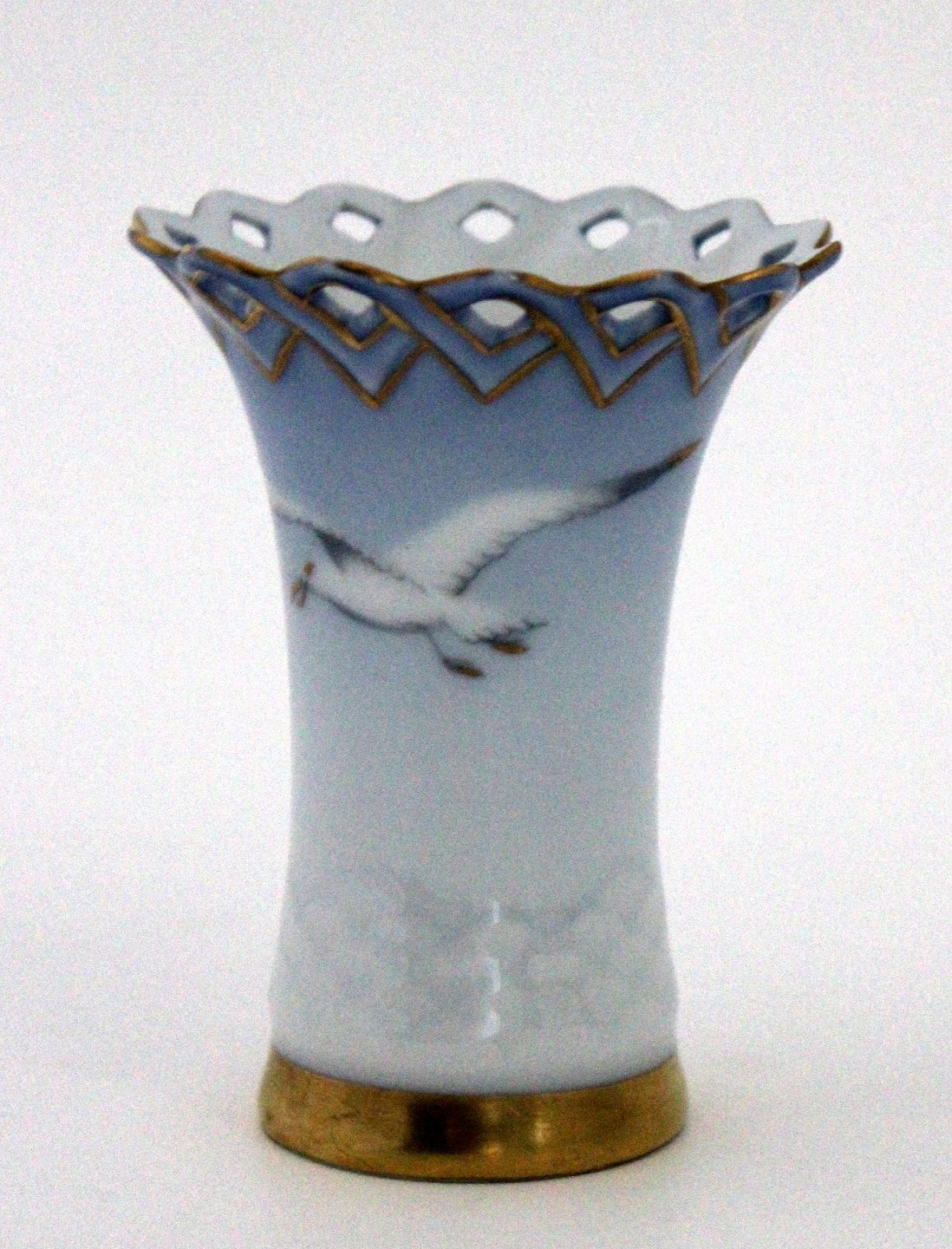 Kuvertvase med hulkant, Måge med guld, Bing & Grøndahl