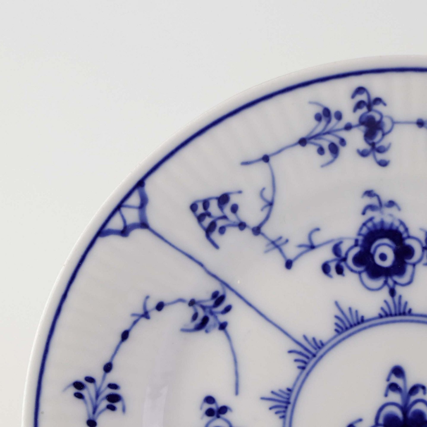 Flad kagetallerken i kongelig porcelæn fra stellet Musselmalet riflet. Nr. 1/300 Producent Royal Copenhagen