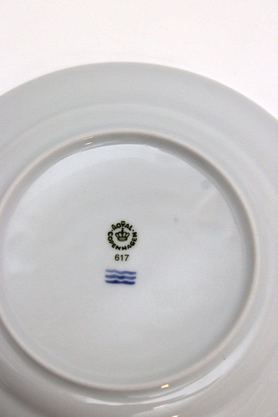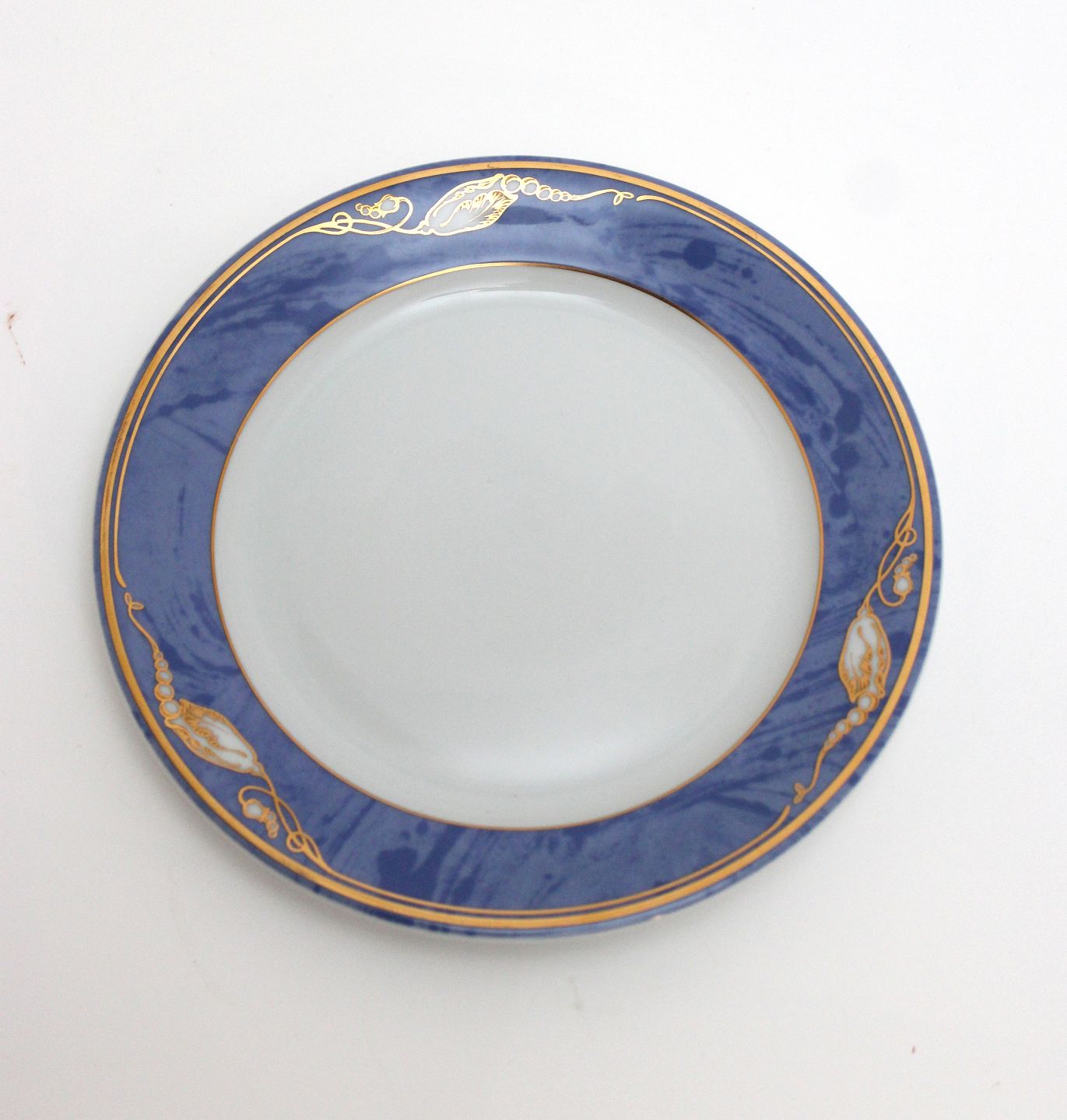 Royal Copenhagen, Blå Magnolia. Blå marmoreret bort dekoreret med gylden blomsterknop. Designet af Flemming Eskildsen. Stor kagetallerken. Diameter 17 cm. Nr. 617. I. sortering. Pris: 50 kr. stk. Lager: 6 Händler