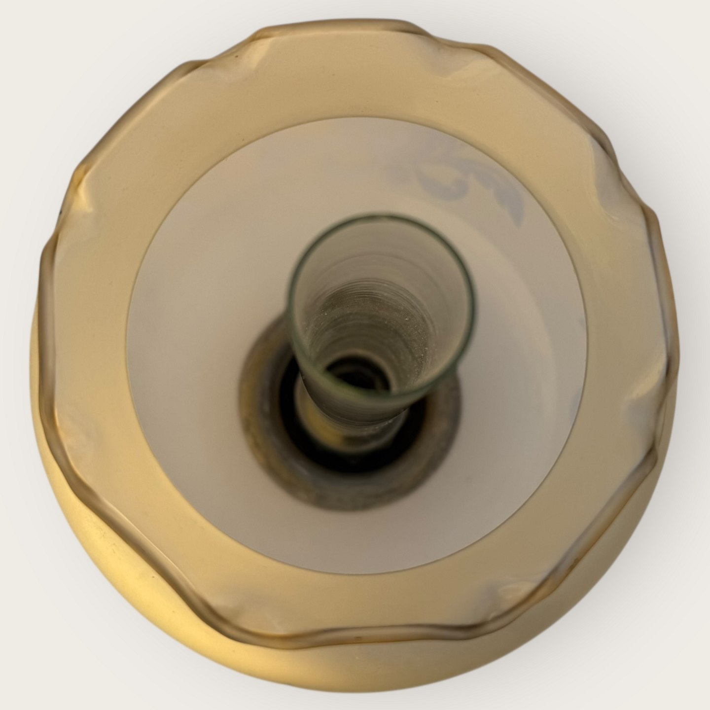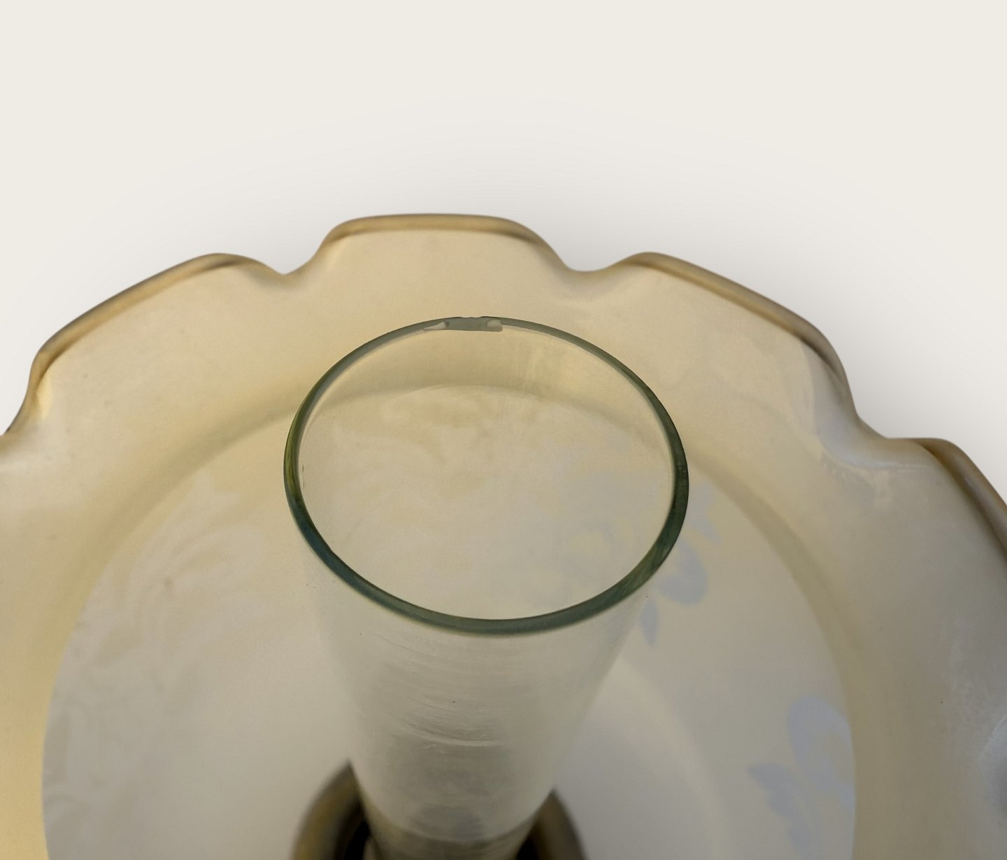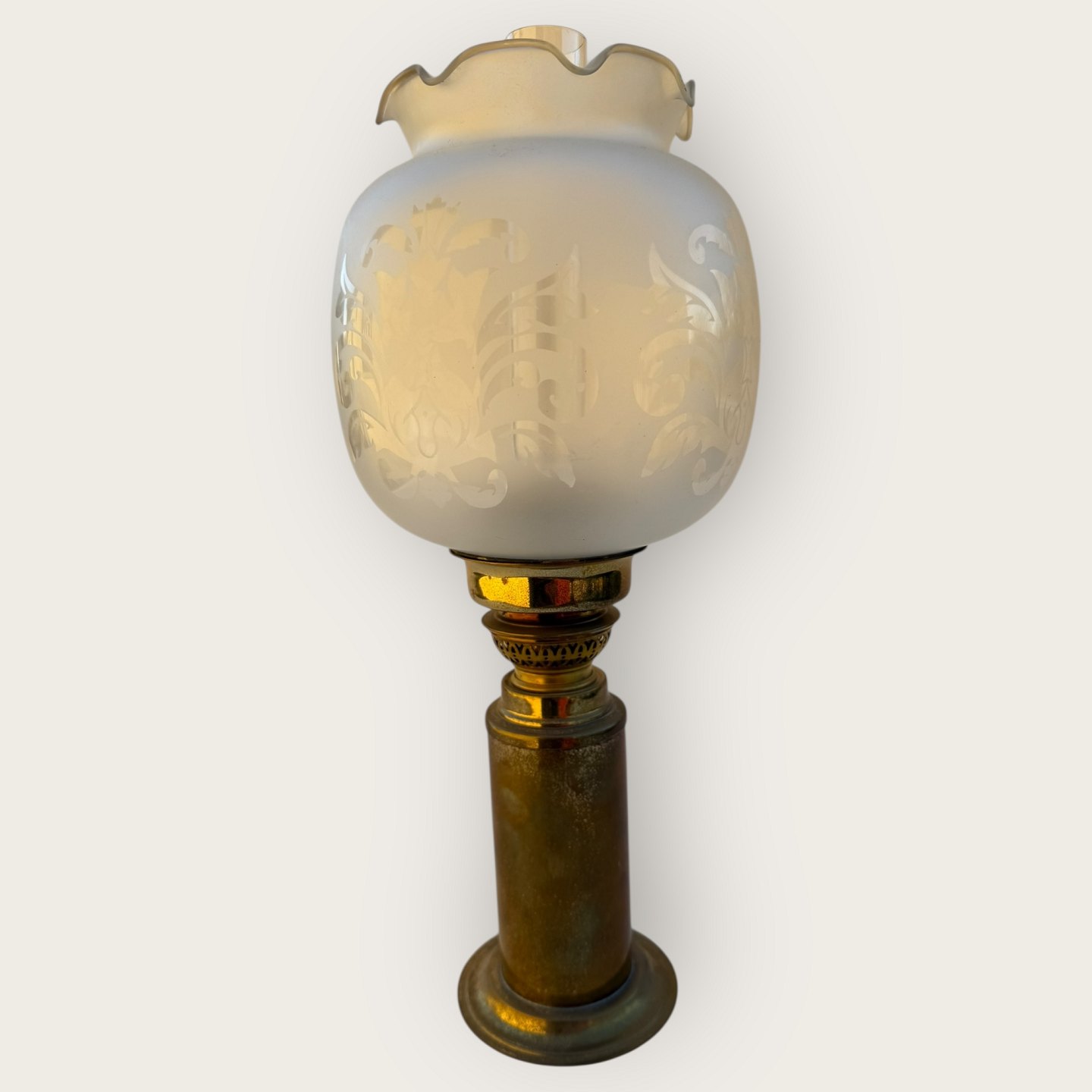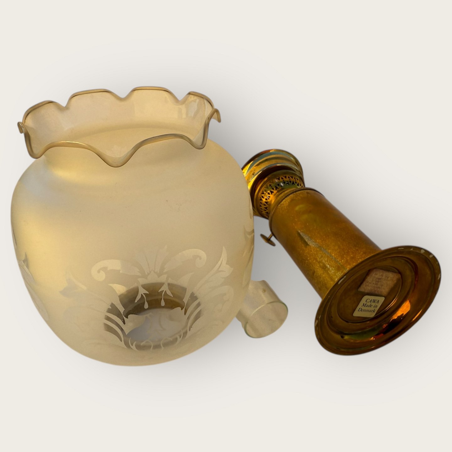 Cawa Petroleumlampe, Messing mit Glasschirm, Höhe 31 cm, sehr kleine Kerbe im Brennglas oben (siehe Foto) *Ansonsten schöner, patinierter Zustand*Lager: 1