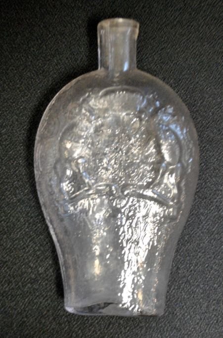 Schwedische Taschenlerche aus Klarglas, 19. Jahrhundert. Mit schwedischem Wappen und Eichenlaub- und Eichelnmotiv. Länge: 17,5 cm.Bestellnummer: 28683
