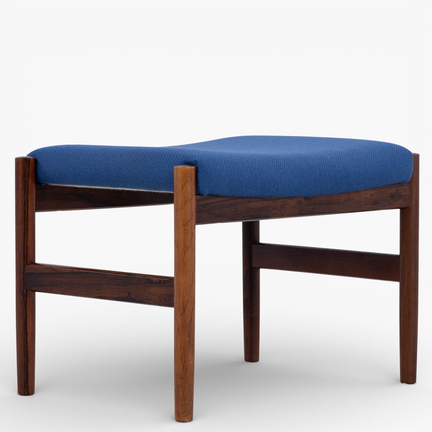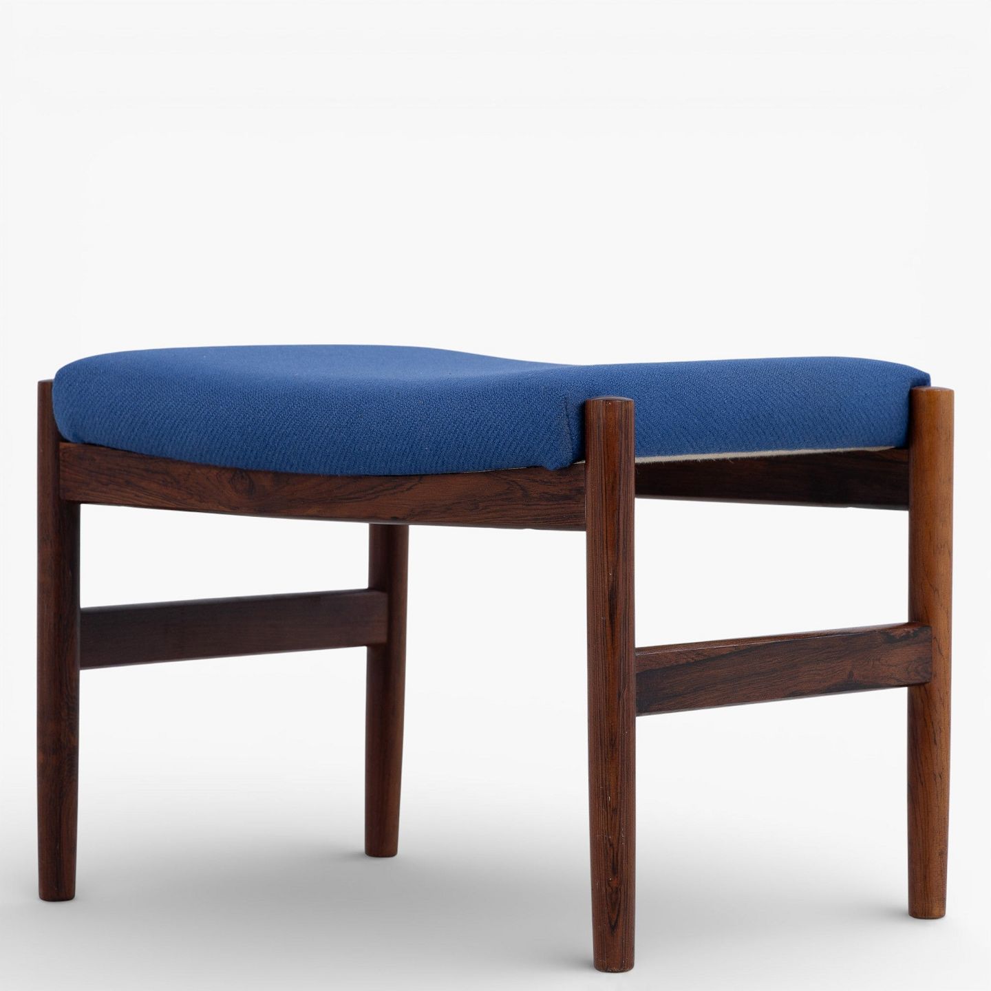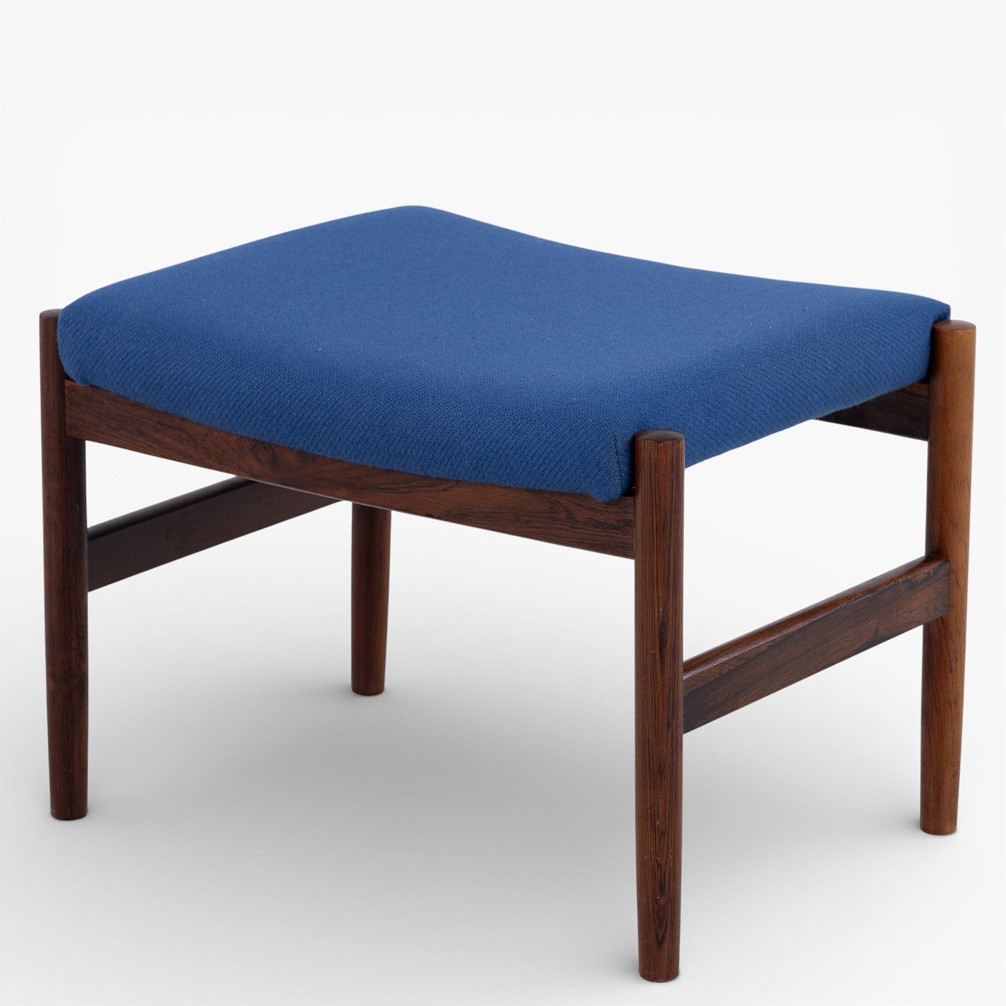 Spøttrup Møbelfabrik.Fodskammel i patineret palisander betrukket med blå uld.