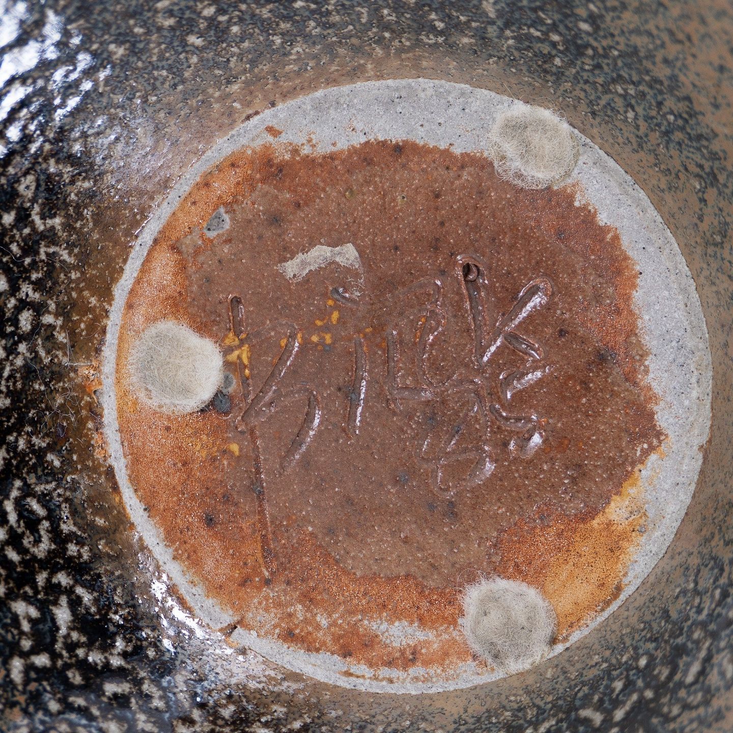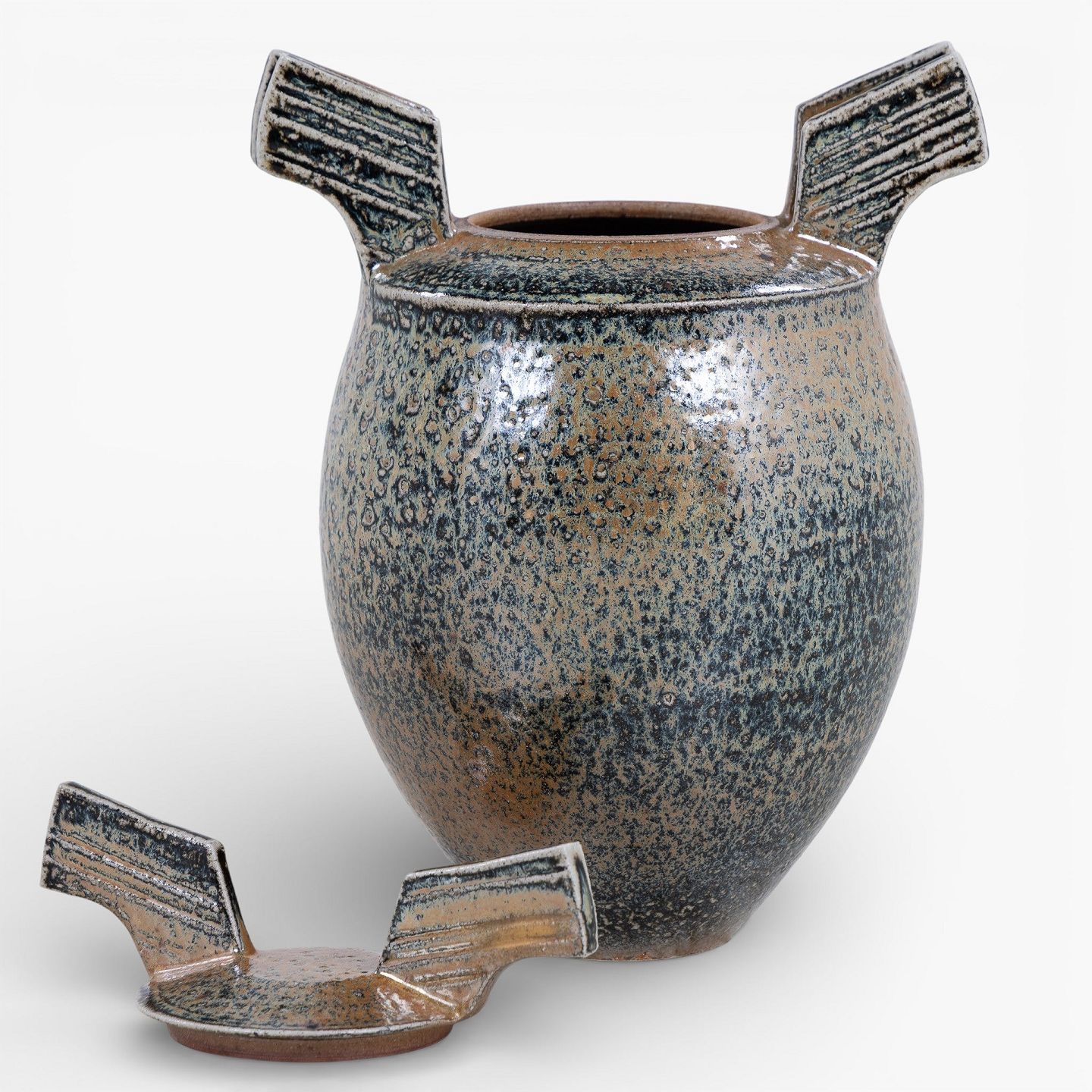 Aage Birck / Eget værksted.Unik lågkrukke i stentøj med brun saltglasur. Signeret 'Birck 85'.