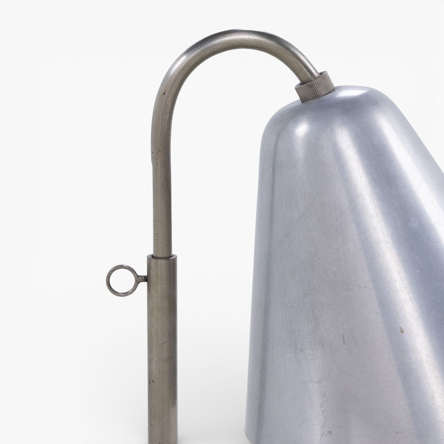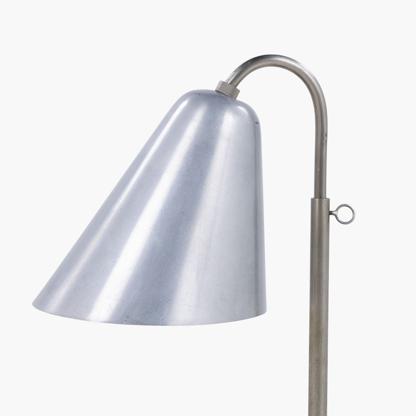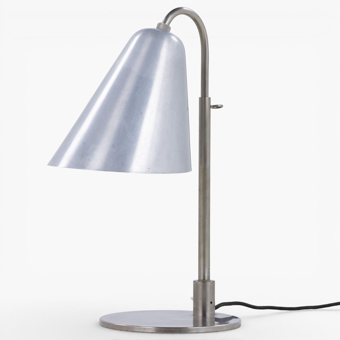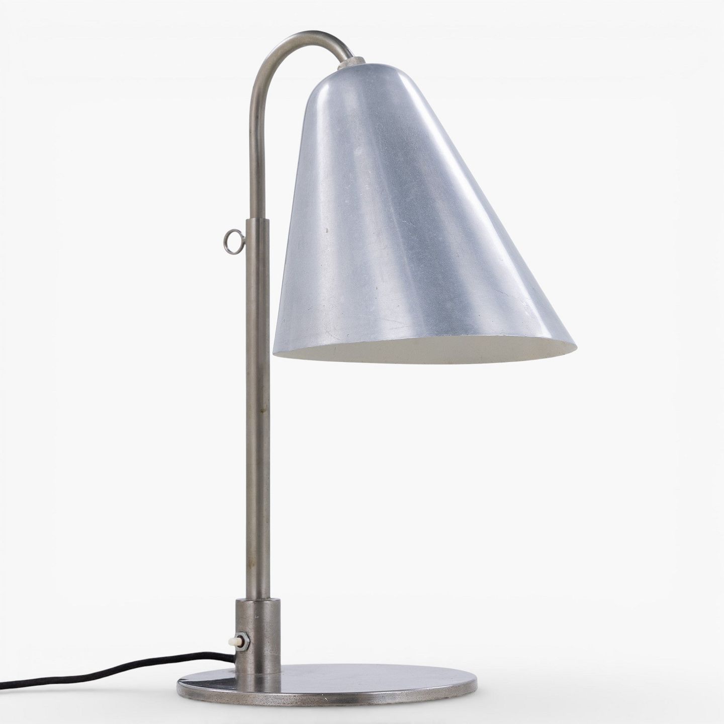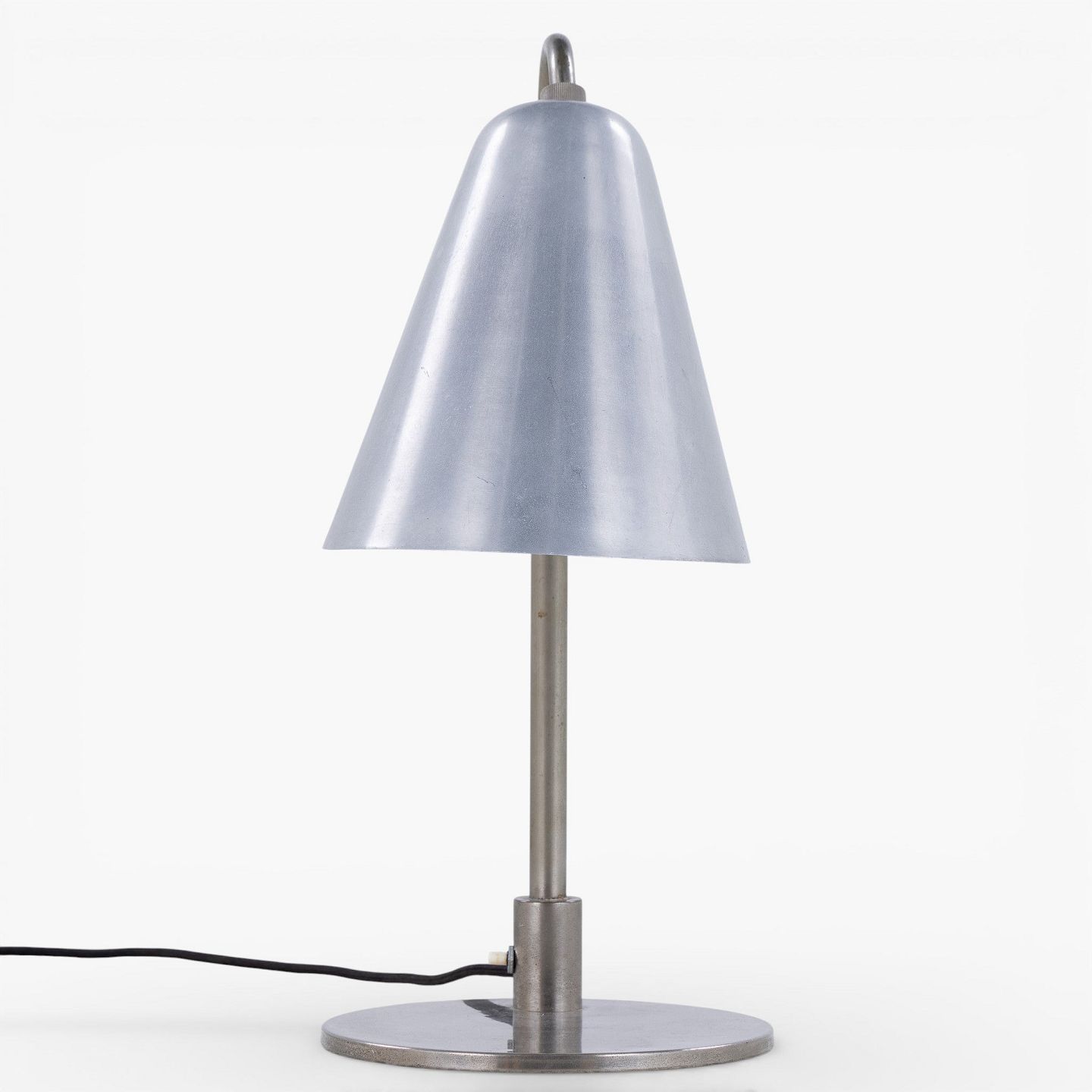Vilhelm Lauritzen & Frits Schlegel / Fritzches GlashandelSjælden bordlampe i forniklet metal med tragtformet skærm. Udført i 1930'erne.