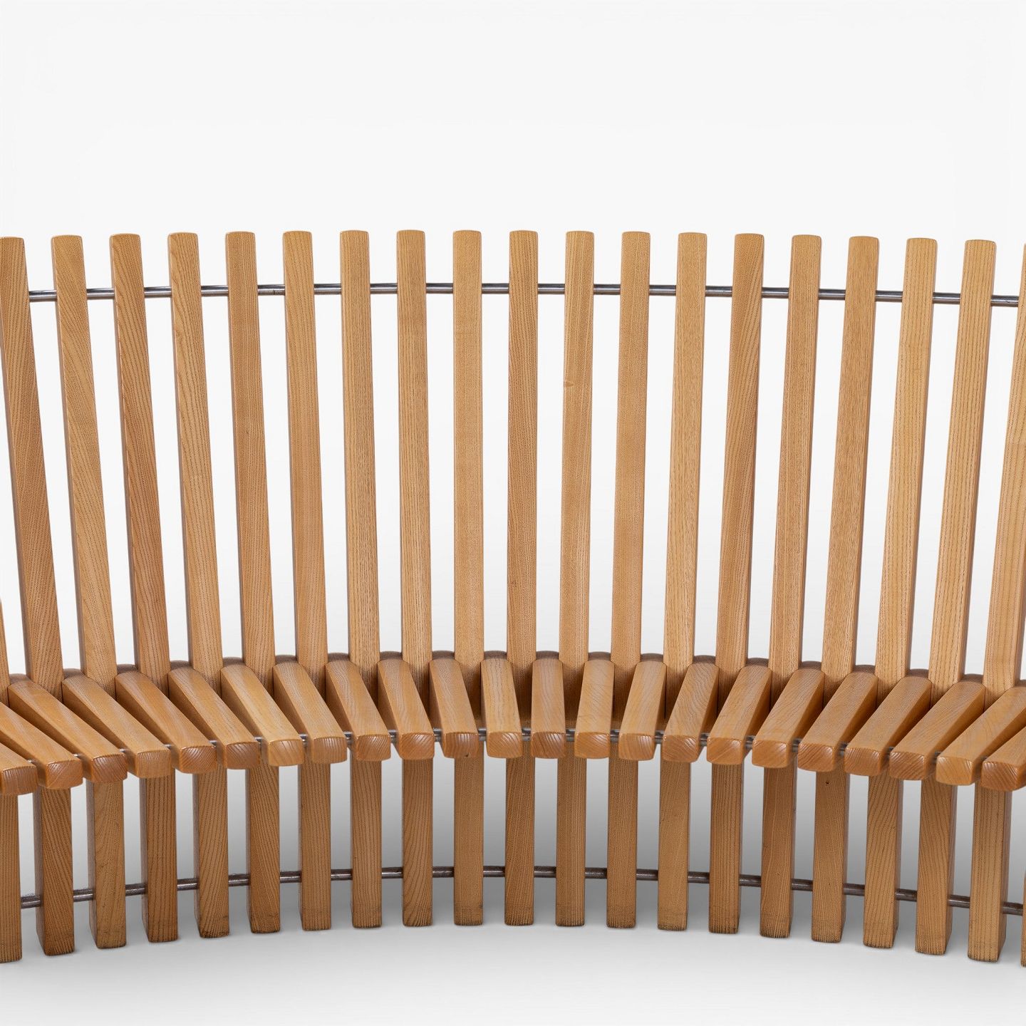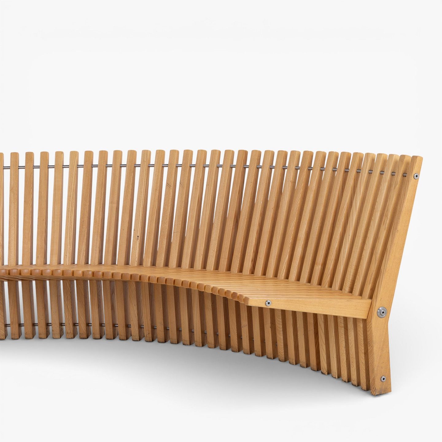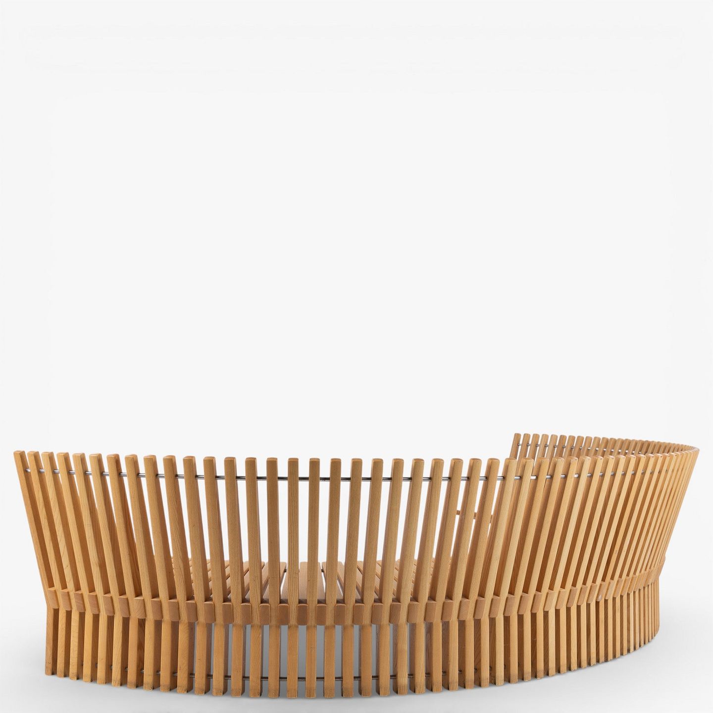 Per Borre / Fredericia Furniture.'Astral'-bænk i massiv patineret elmetræ i form af en halvcirkel. Formgivet i 1979.