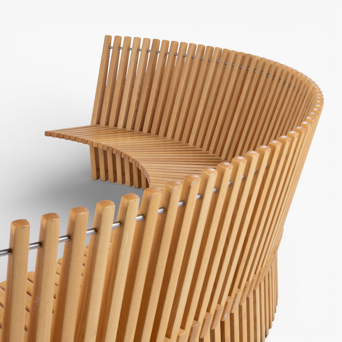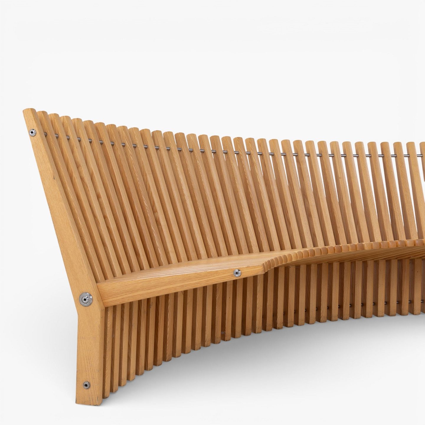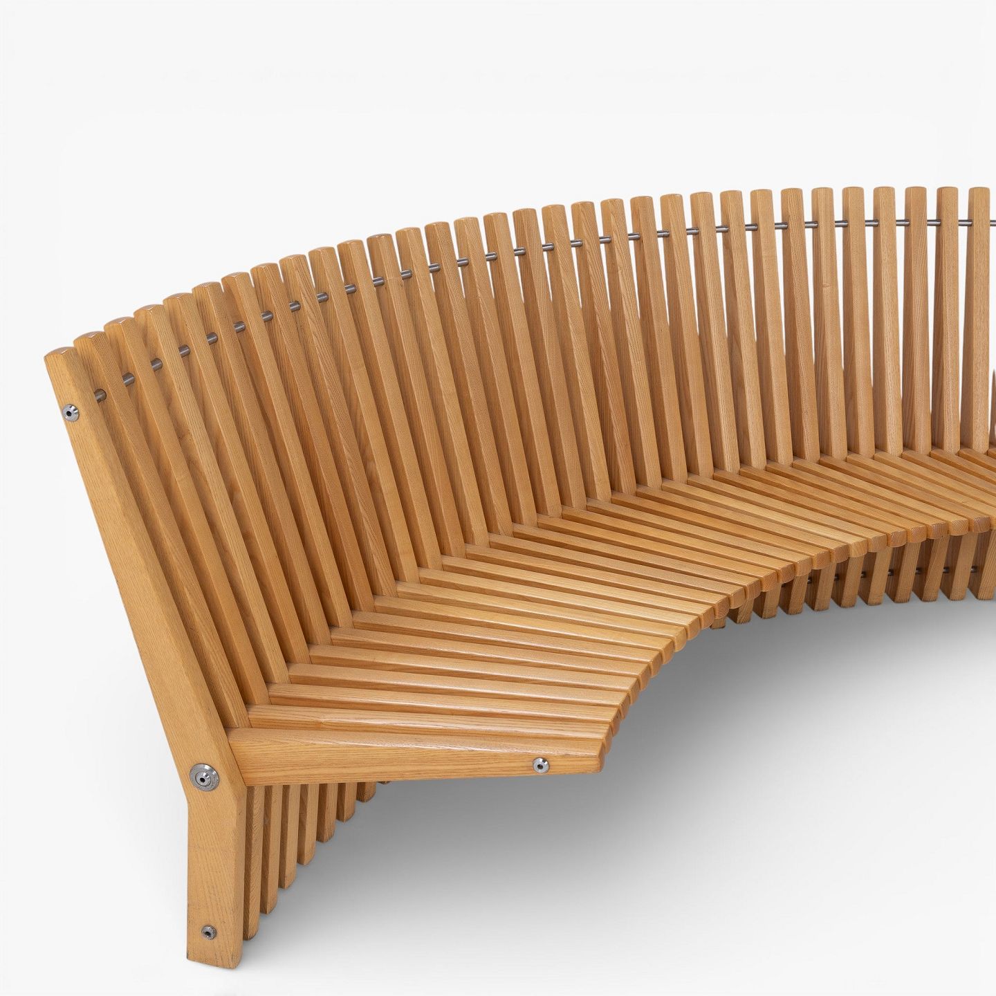 Per Borre / Fredericia Furniture.'Astral'-bænk i massiv patineret elmetræ i form af en halvcirkel. Formgivet i 1979.