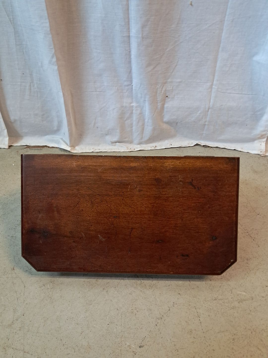 Hylde i fineret mahogni, fra 1900erne.Den har brugsspor.