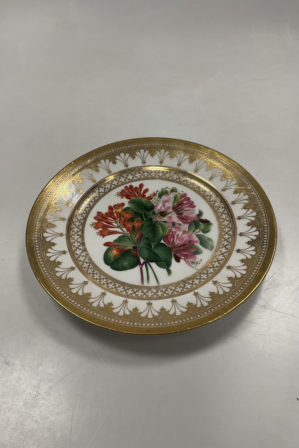 Royal Copenhagen Antik Tallerken med Blomster Motiv og guld. Signeret af Christian Klein fra 1820-1850
