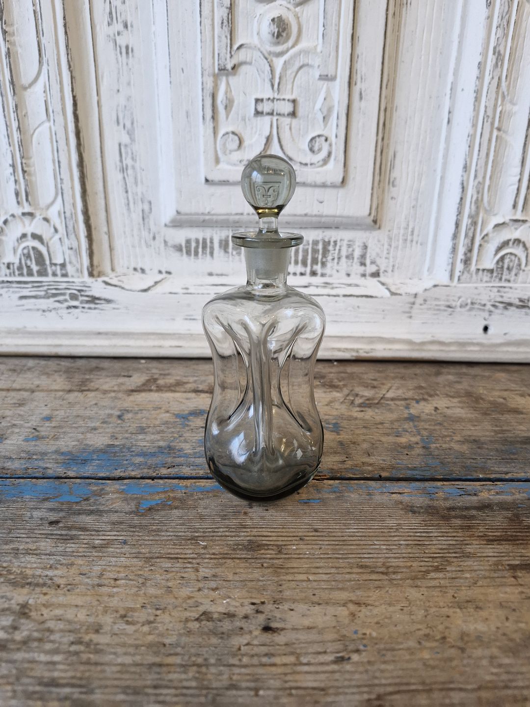 Holmegaard lille klukflaske i røgfarvet glas Højde 16 cm.