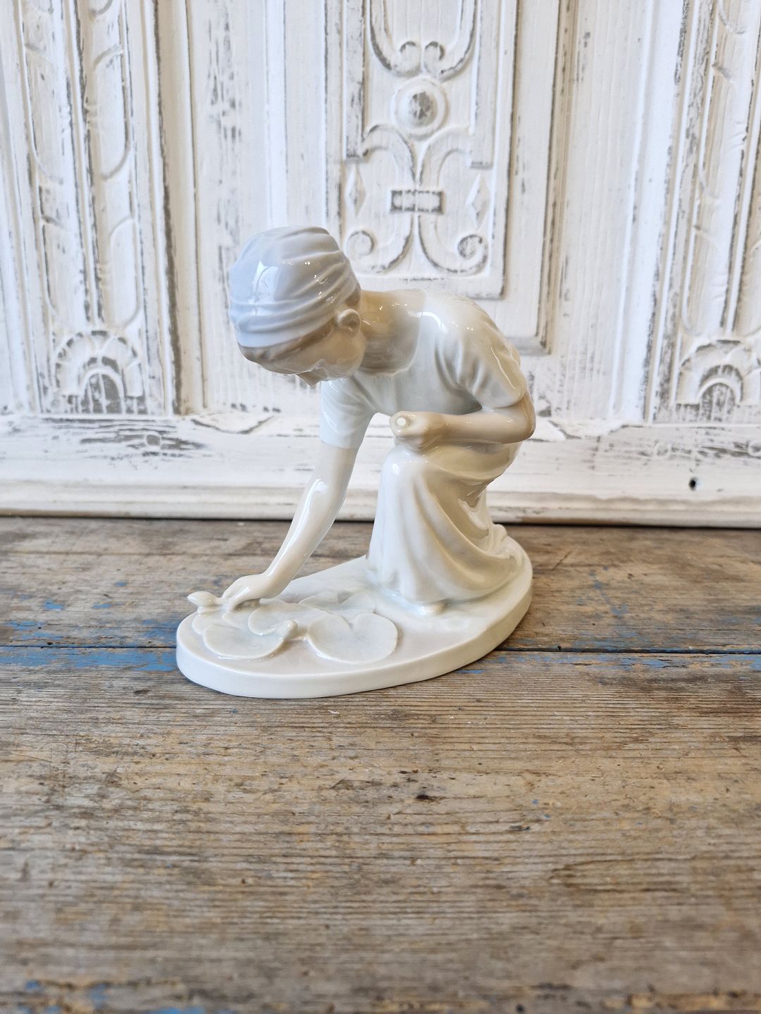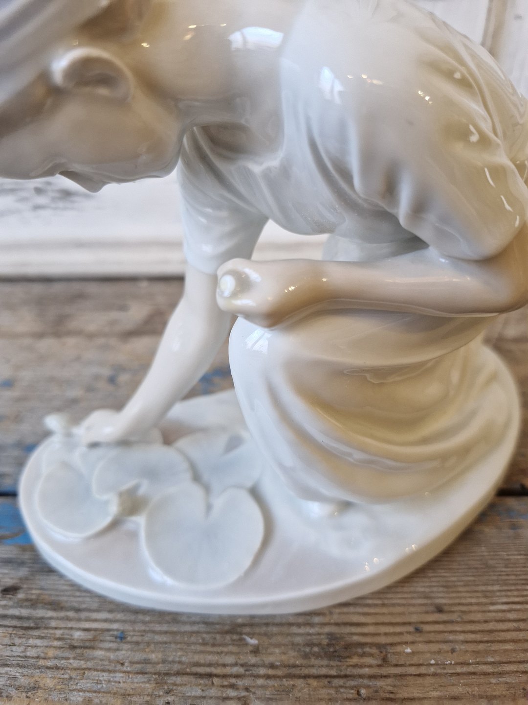B&G sjælden Art Nouveau figur - Pige der plukker åkander No. 1685, 1. sortering - OBS fremstår med skade - åkanden i hånden er slået af.