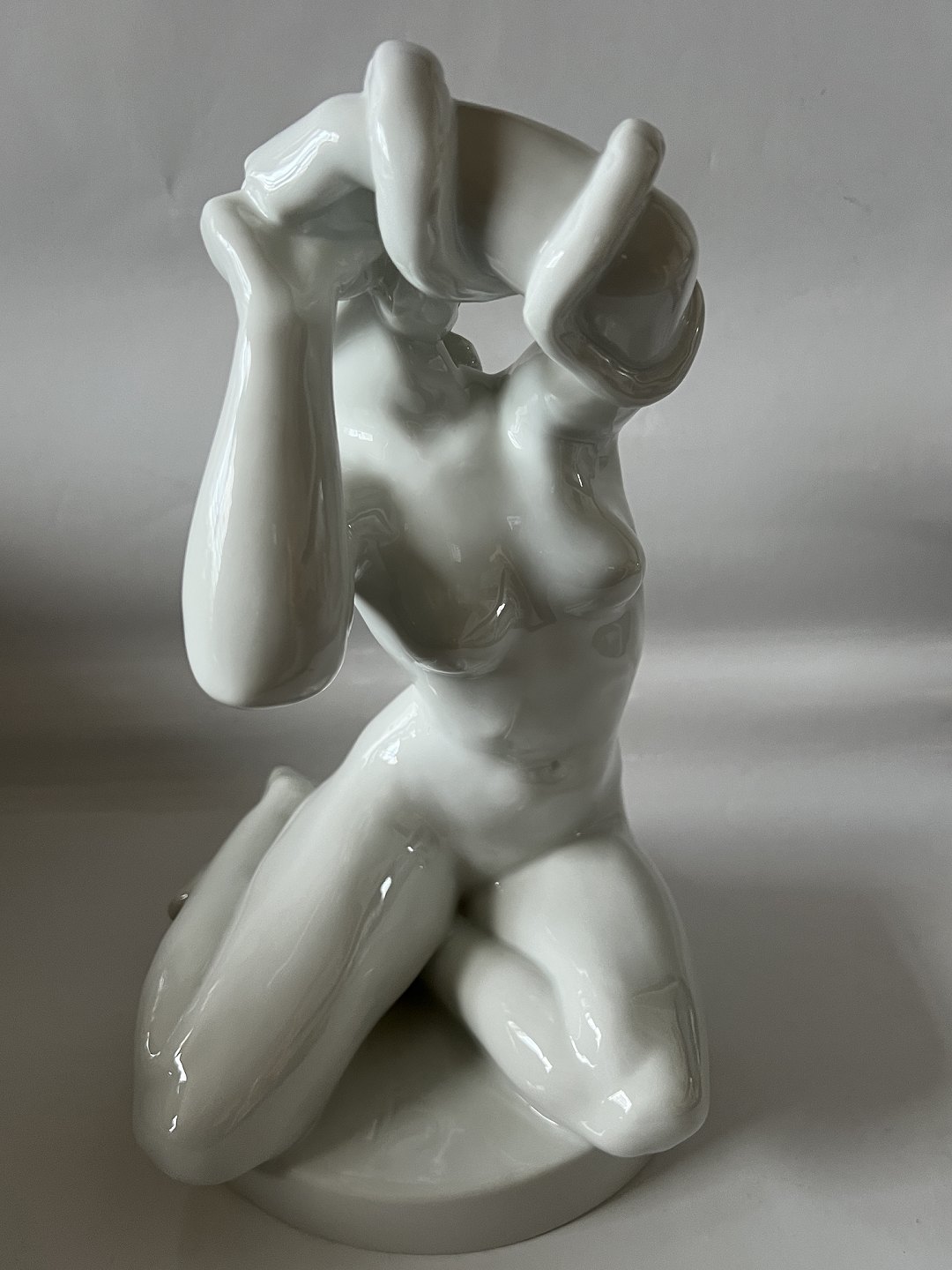 Dahl Jensen Elegant og dynamisk porcelænsfigur, med motiv af Eva med slangen. Figuren har mange flotte detaljer, og fremstår minimalistisk i stilen. Den ensfarvede hvide farve giver figuren en tidløs tilstand, hvor motivet træder frem og skaber liv og dynamik. Figuren er fremstillet med sans for detaljen, og vil være et ideelt samlerobjekt. Figuren er 1. sortering, og uden skader eller skår af nogen art.