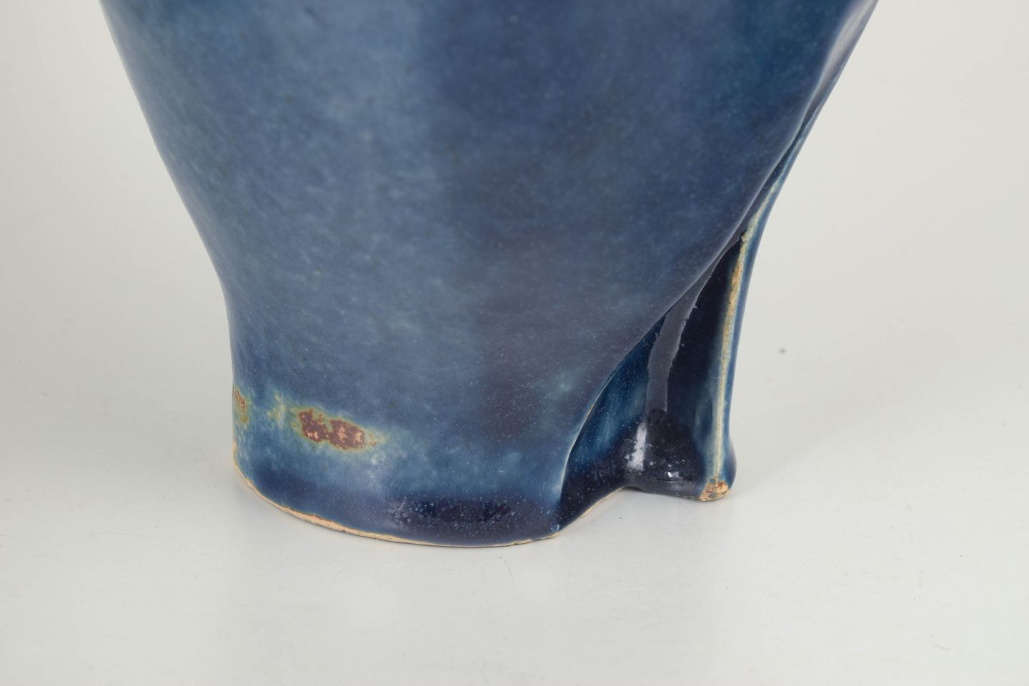 Europæisk studiokeramiker unik vase, 1987.Skulpturelt udformet vase i stentøj med dybblå, let levende glasur og organisk, asymmetrisk åbning. Signeret og dateret 1987.