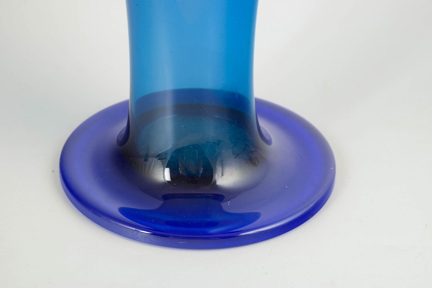 Josef Riedel og Polaun-værkerne regnes blandt de mest betydningsfulde producenter af tjekkisk kunstglas i første halvdel af det 20. århundrede. I 1930’erne og 40’erne blev Art Deco-udtrykket videreført i kraftige, arkitektoniske former og intense farver, ofte udført i tungt, mundblæst glas. Store trompetvaser som denne kombinerer funktion med skulpturel tyngde og er i dag højt værdsatte samlerobjekter.