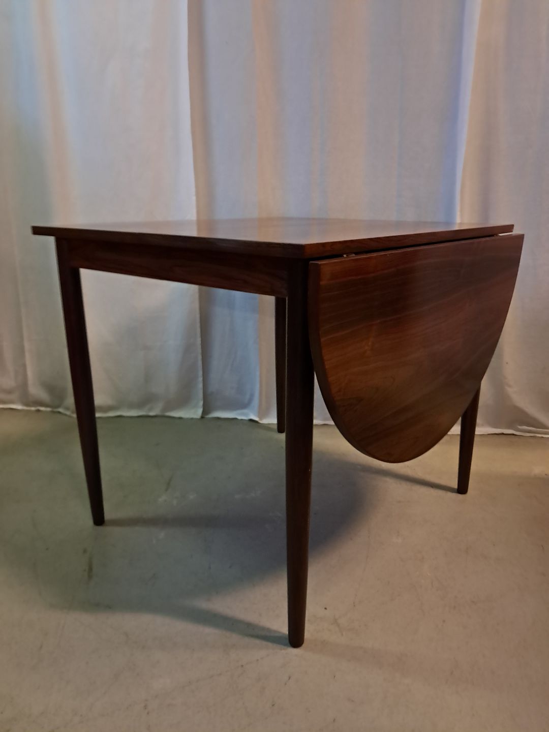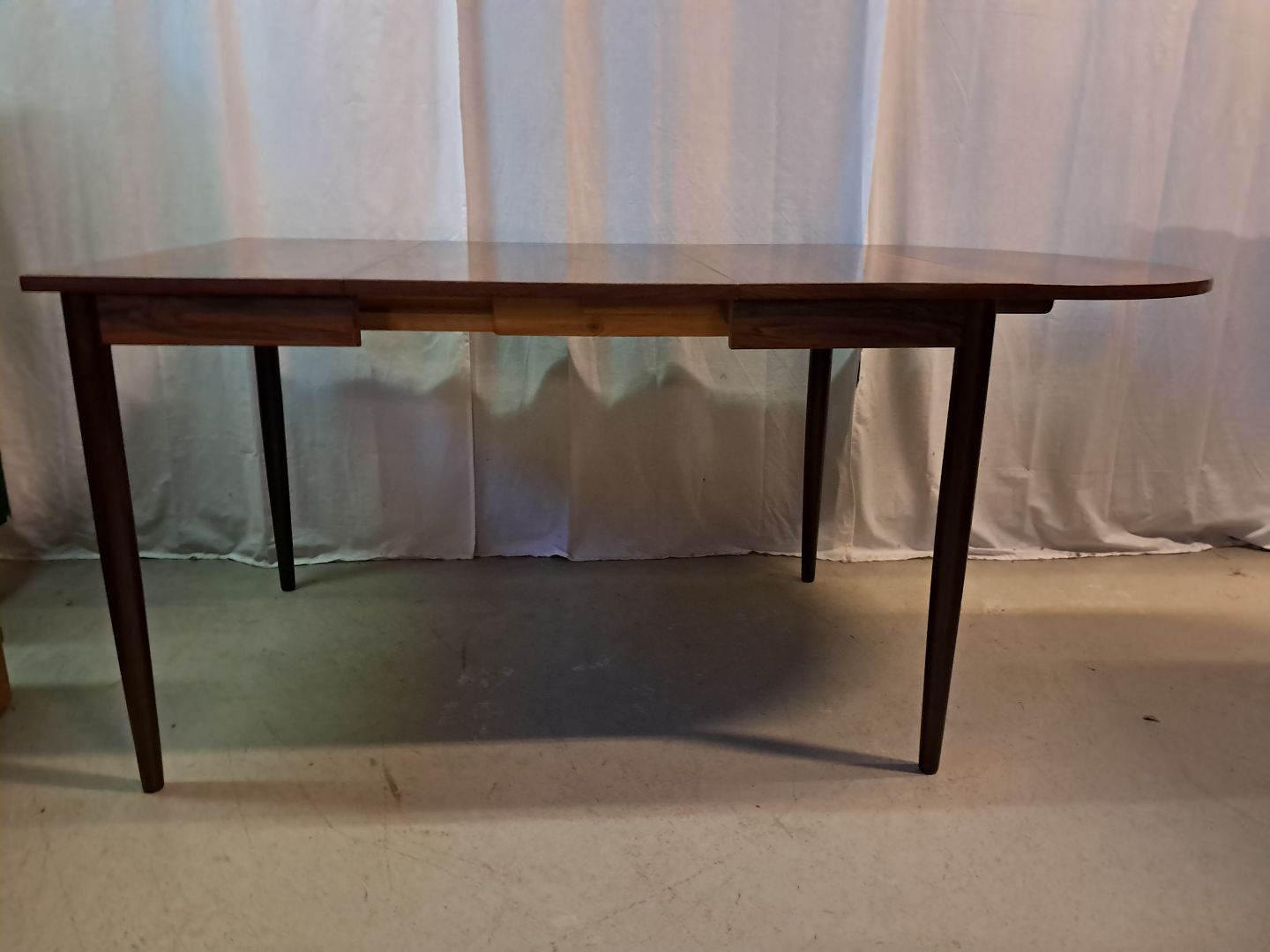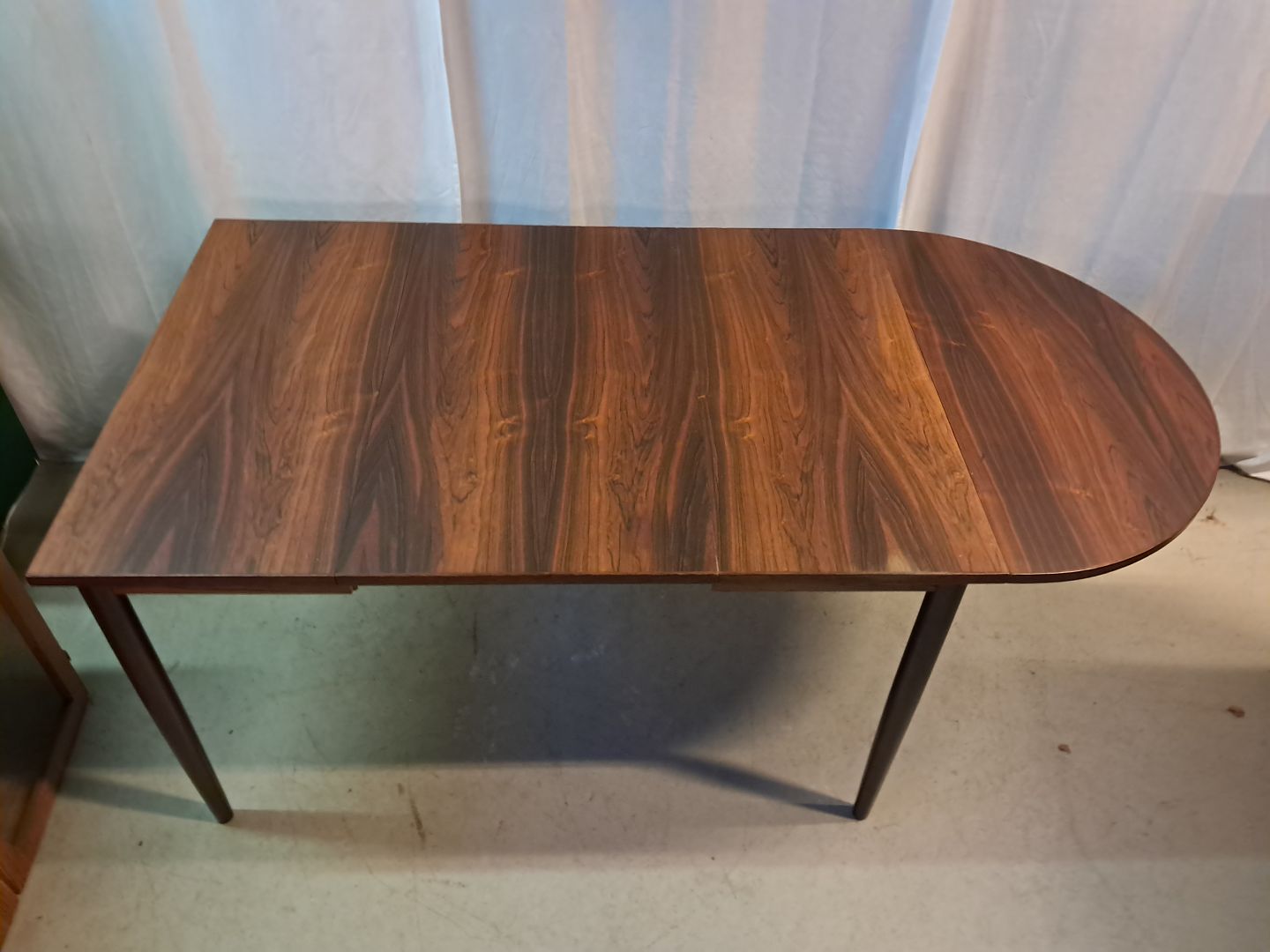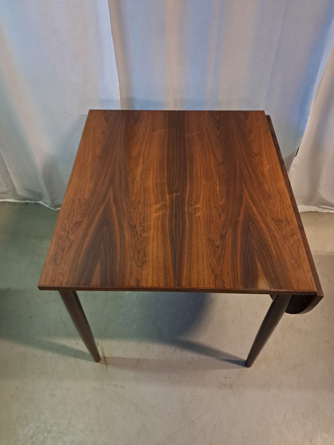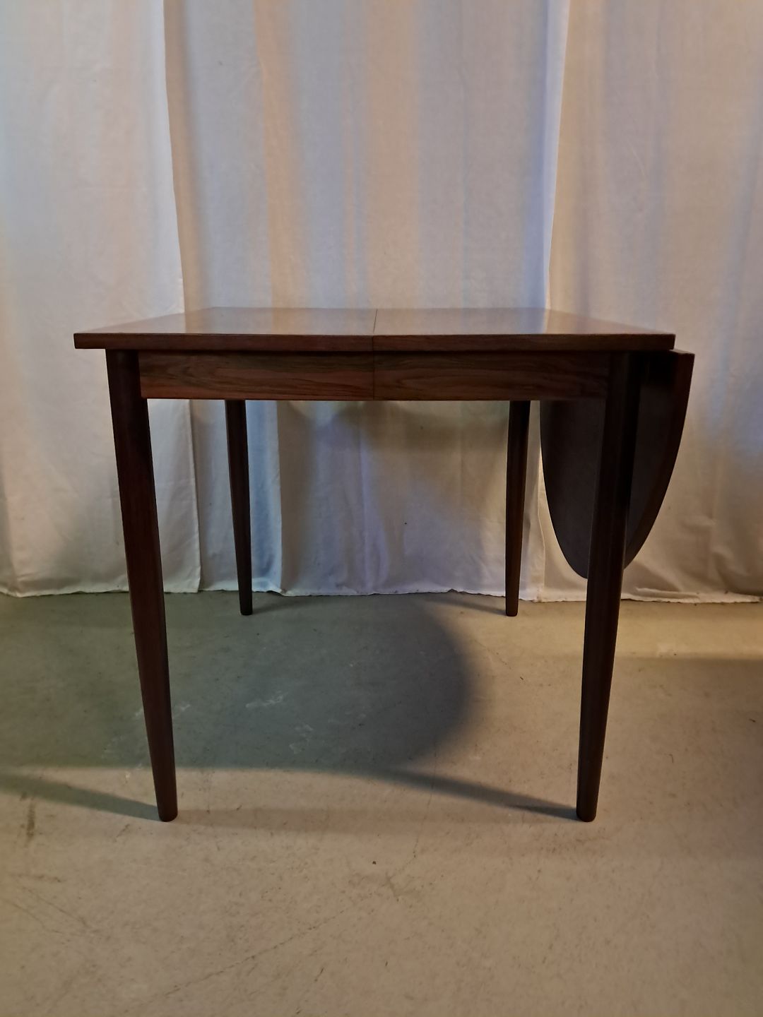 Spisebord i fineret palisander, fra 1960erne.Der med følger en klap og 1 tillægsplade og det har brugsspor.