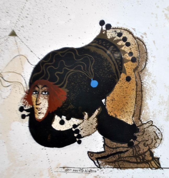 Holzer, Adi (1936 -) Österreich/Dänemark: Der nachte hintern. Farblithographie. Signiert Nr. 16/30 1975. 45 x 51 cm.Gerahmt: 62 x 68 cm.