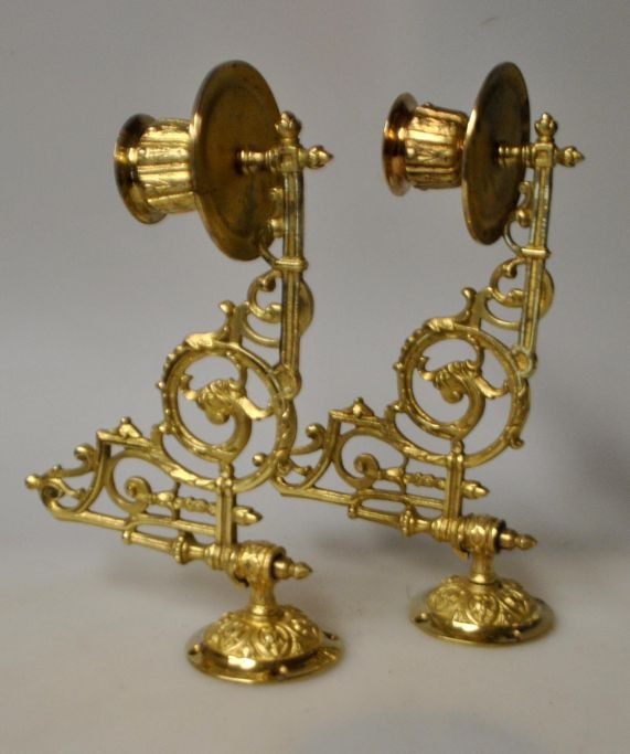 Paar Klavierleuchter aus Messing, 19. Jahrhundert. Mit Maskenmotiven verziert. Länge: 19,5 cm.Einwandfreier Zustand. Frisch poliert!