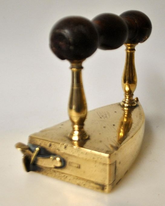 Messing, 19. Jahrhundert. Dänemark. Gestempelt. Mit Gravuren. Mit Holzgriff. L: 14 cm. H: 12,5 cm.Einwandfreier Zustand!