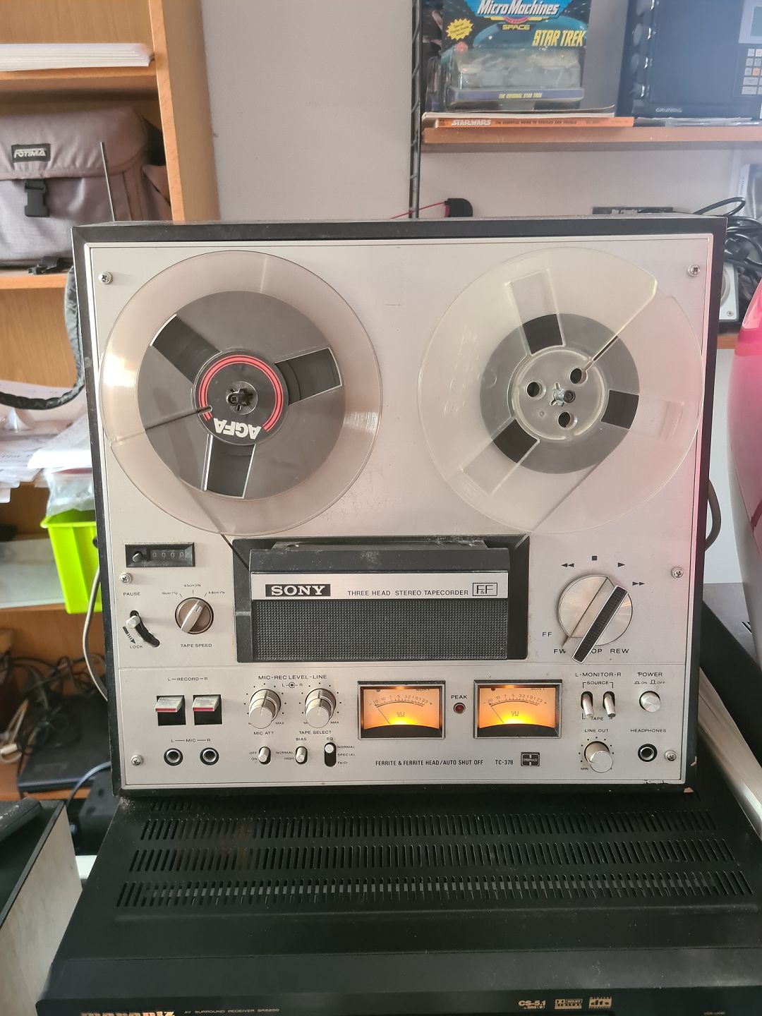 Spolebåndoptager fra Sony model TC-378. Fremstillet i 1977 og virker ok dog er counteren umiddelbart defekt. Trænger nok til lidt service både ydre og indre, men spiller som sagt udmærket. NB svagt indridset på fronten. (Billede)Højde 38 cm. Bredde 42 cm. Dybde 19 cm.