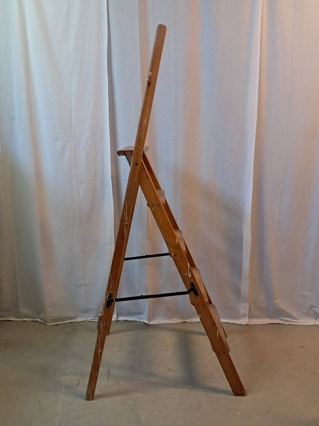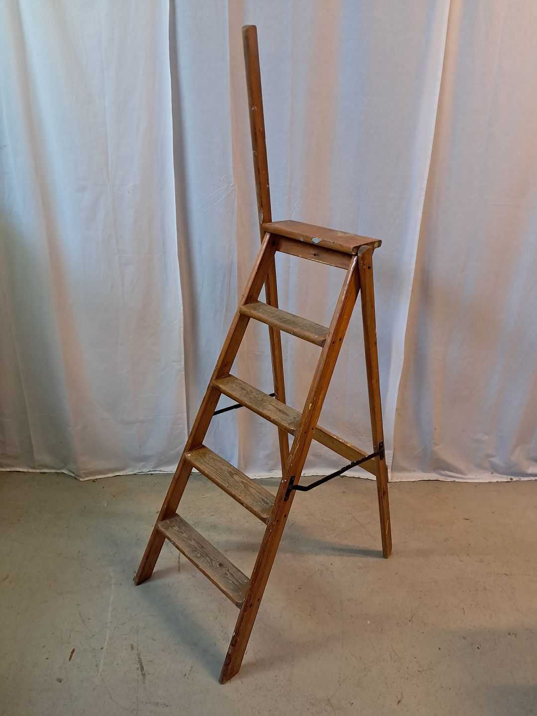 Stige i massivt fyrretræ, fra 1940erne.Den har brugsspor.