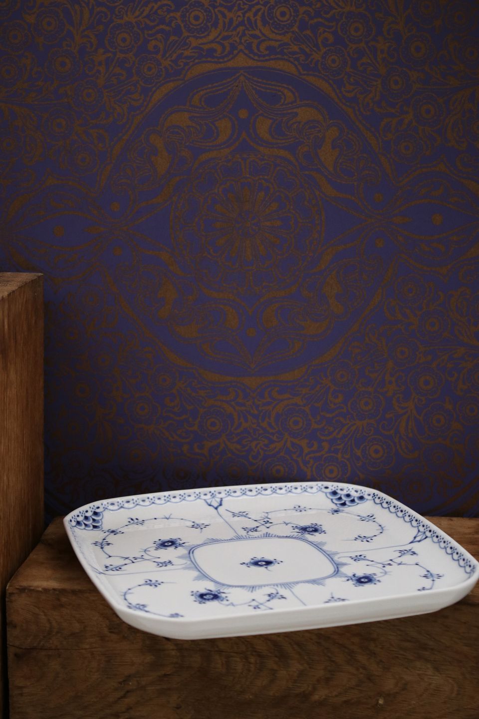 Royal Copenhagen Musselmalet Halvblonde firkantet tallerken.20,5x20,5cm.